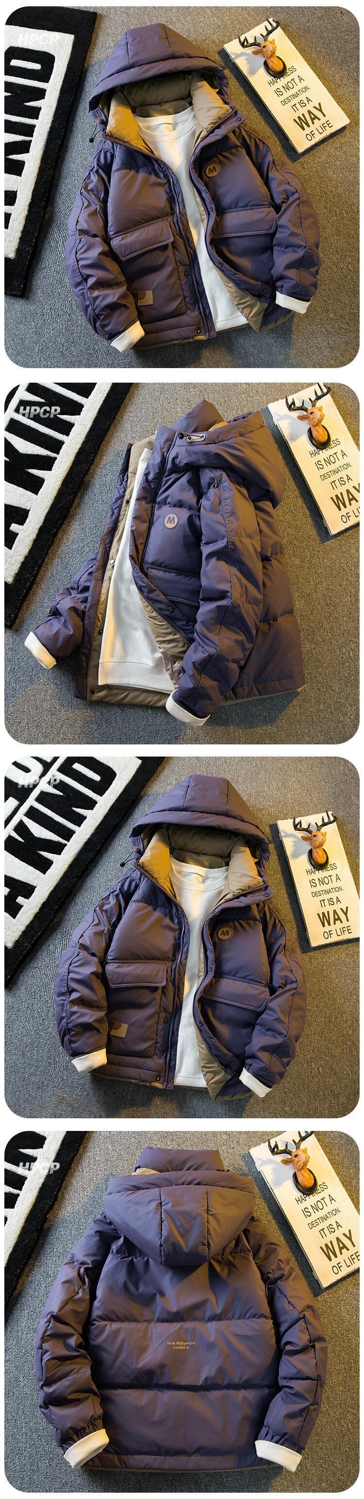 Hengpai トレンディなショートダウンジャケットメンズ冬 2023 新しい肥厚トレンディなブランドフード付き暖かいダウンジャケット男性 ウィンター 冬物 3381991868735089