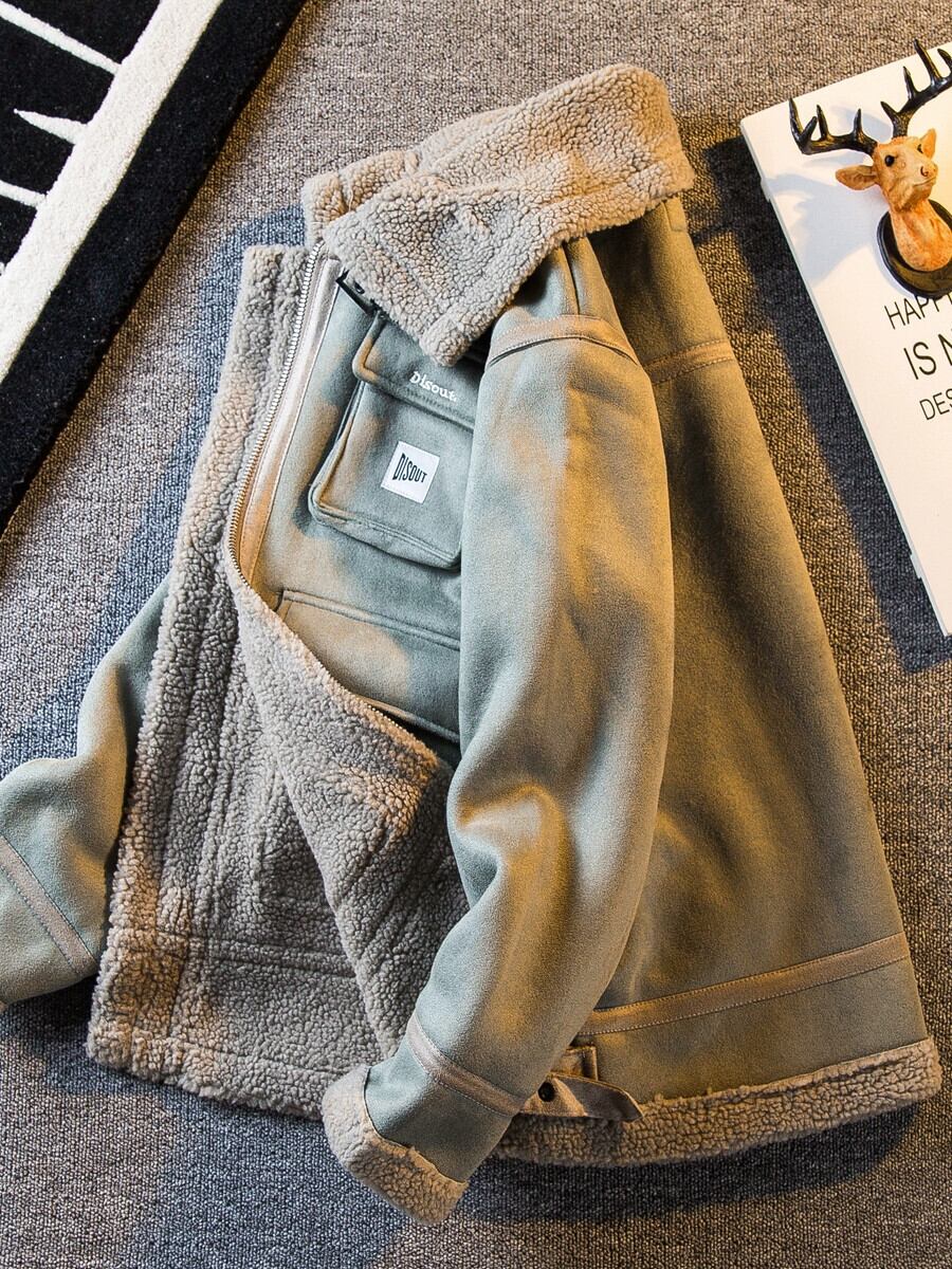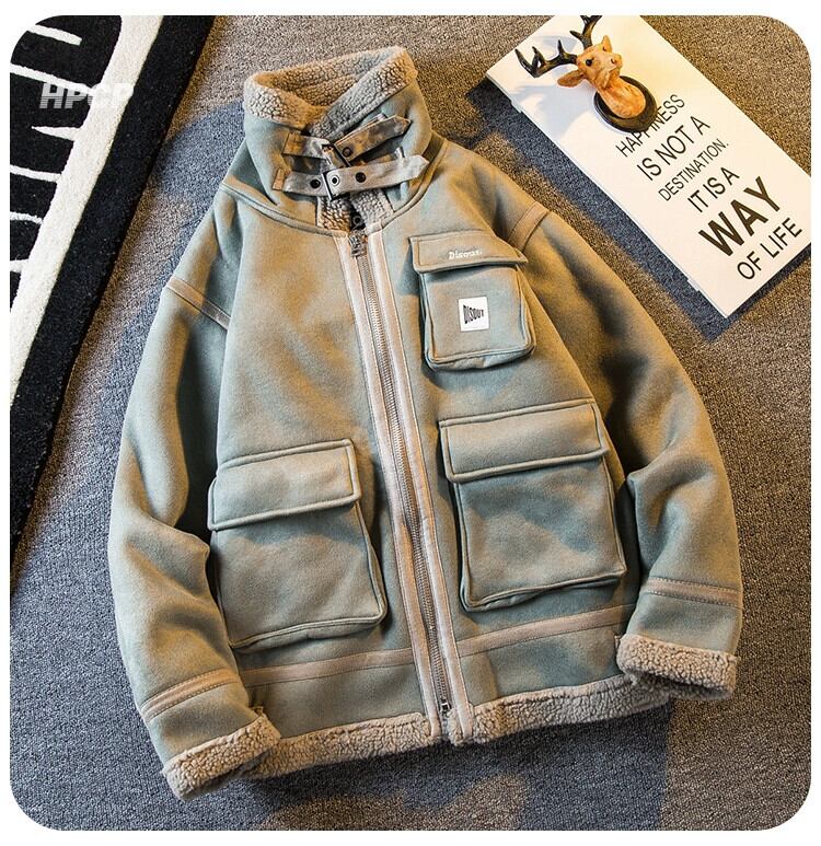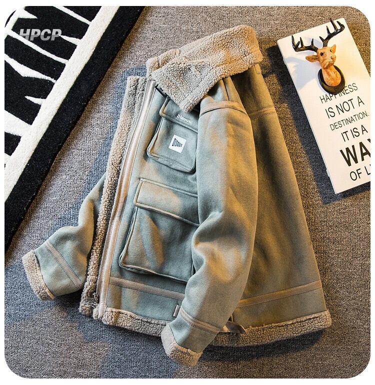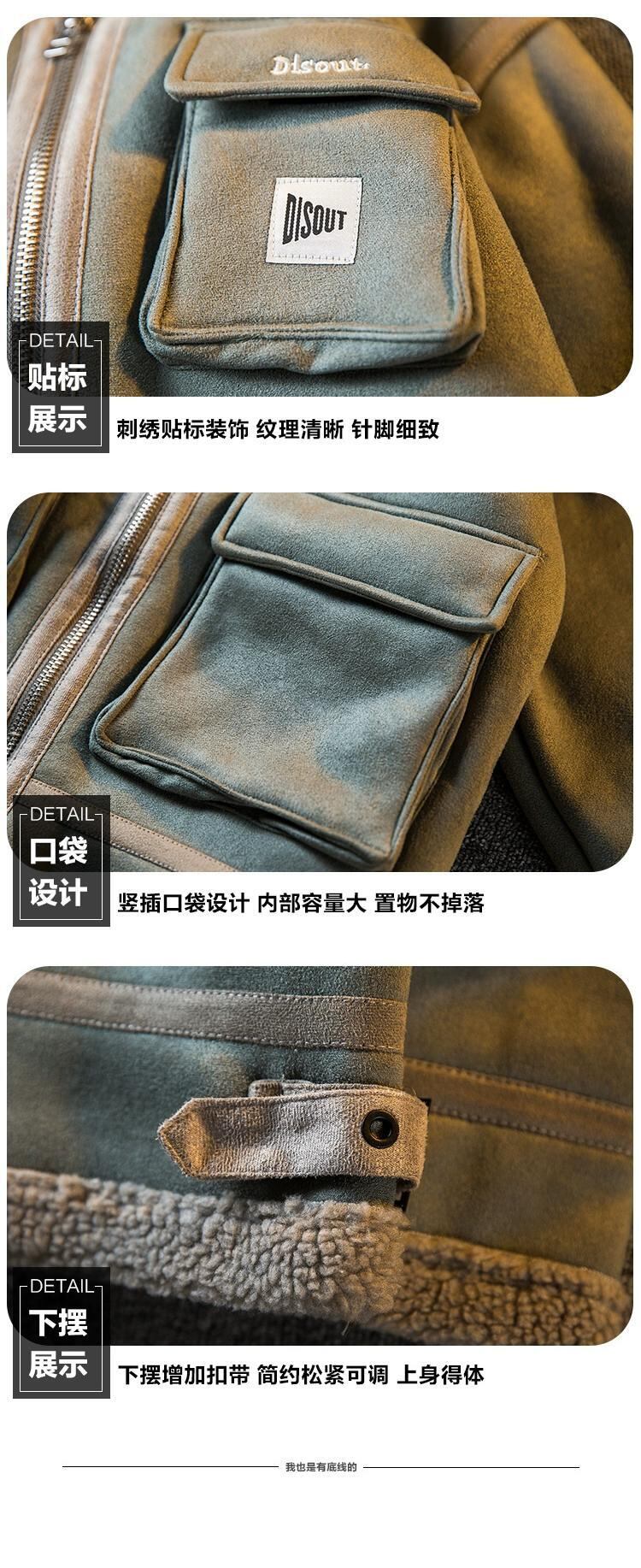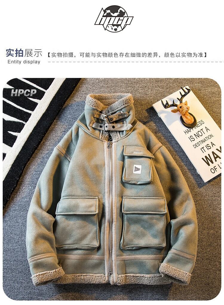 Hengpai トレンディな製品にベルベットと厚みのあるラムウールの作業服と綿の服をファーでつなぎ合わせた冬のオールインワン モーターサイクル ジャケット メンズ コットン ウィンター 冬物 3381972582993280