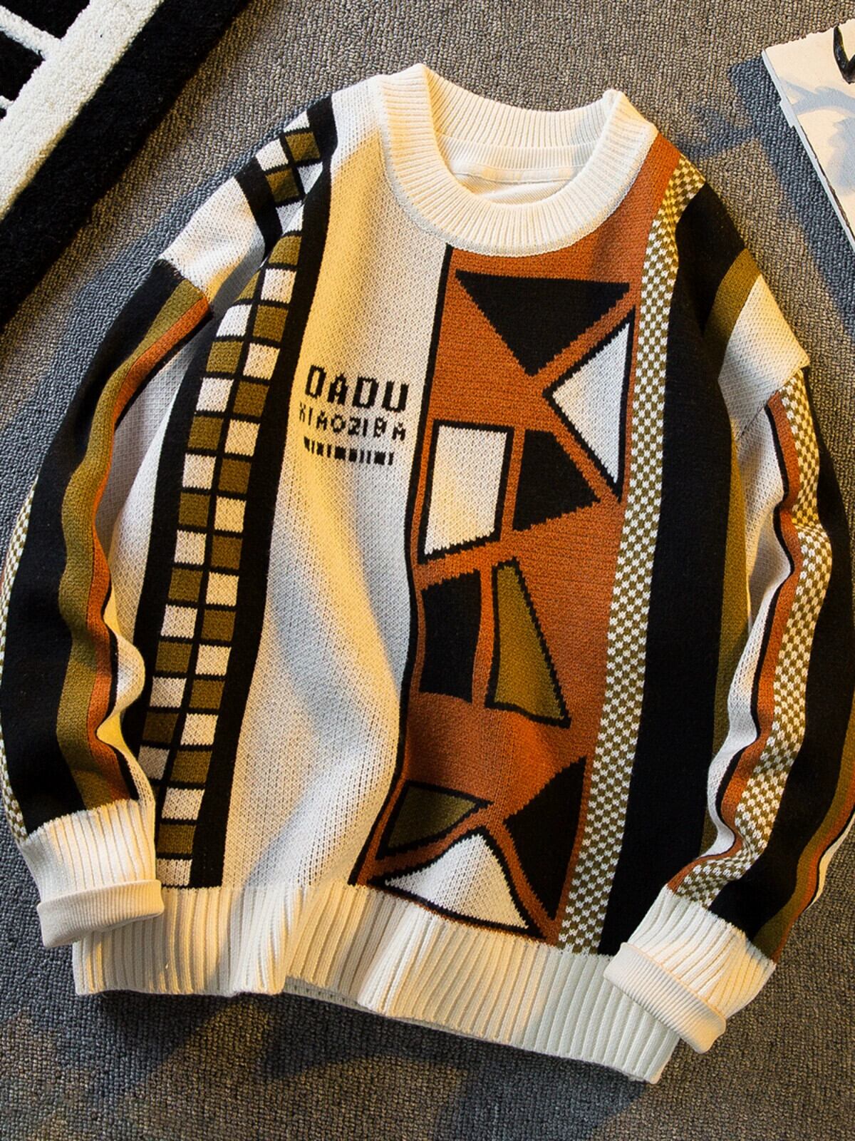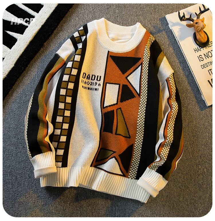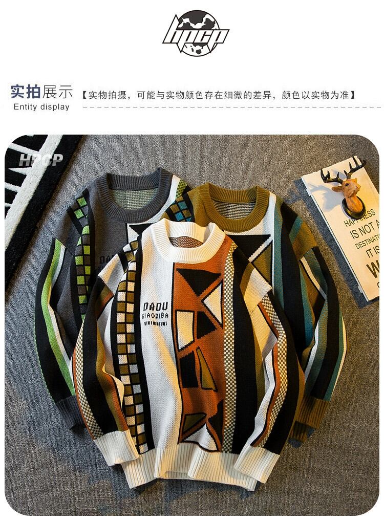 横型スタイルのトレンディな対照的なカラーデザインの秋冬のメンズセーター、トレンディなレイジースタイルのハイエンドニットセーター、多用途のセーター オータム 秋物 ウィンター 冬物 3381945418378925
