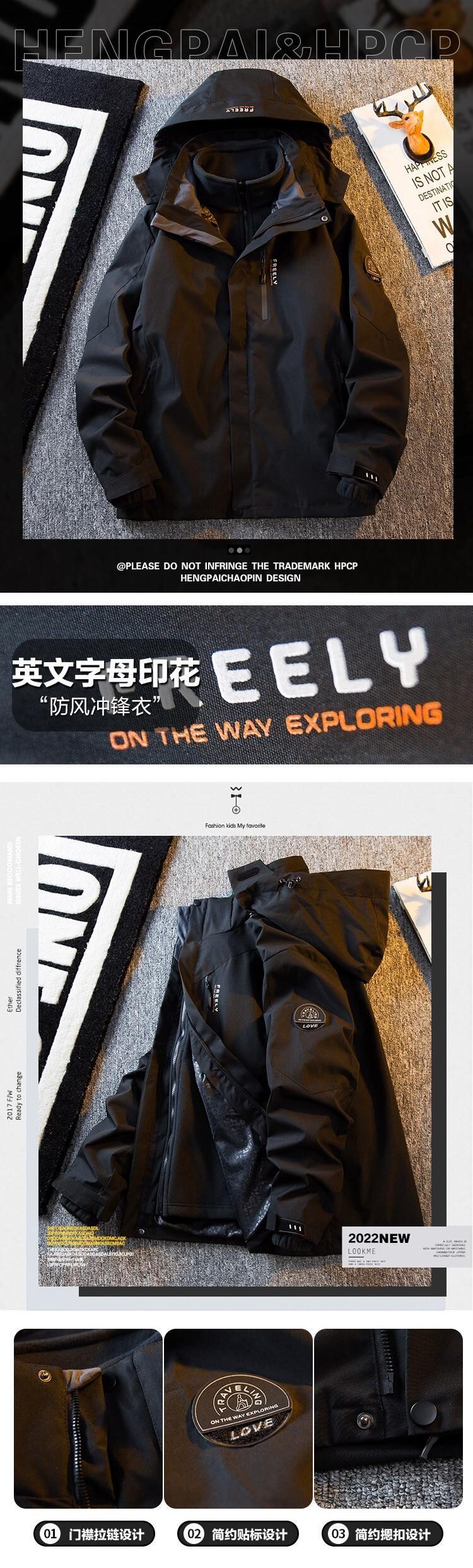 HPCP ヘビーアウトドアジャケットジャケットメンズスリーインワン取り外し可能な冬ベルベット肥厚トレンディブランドフード付きジャケット ウィンター 冬物 3381965388247399