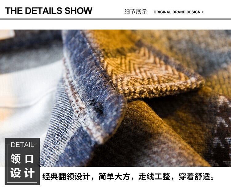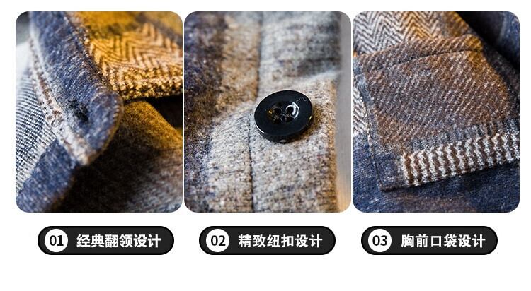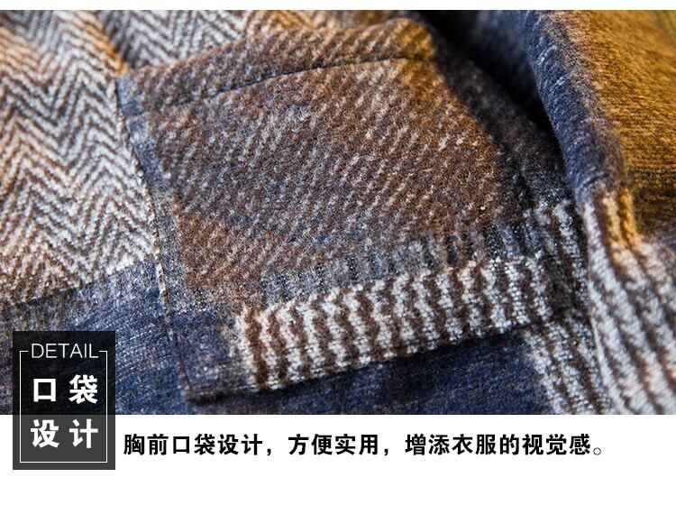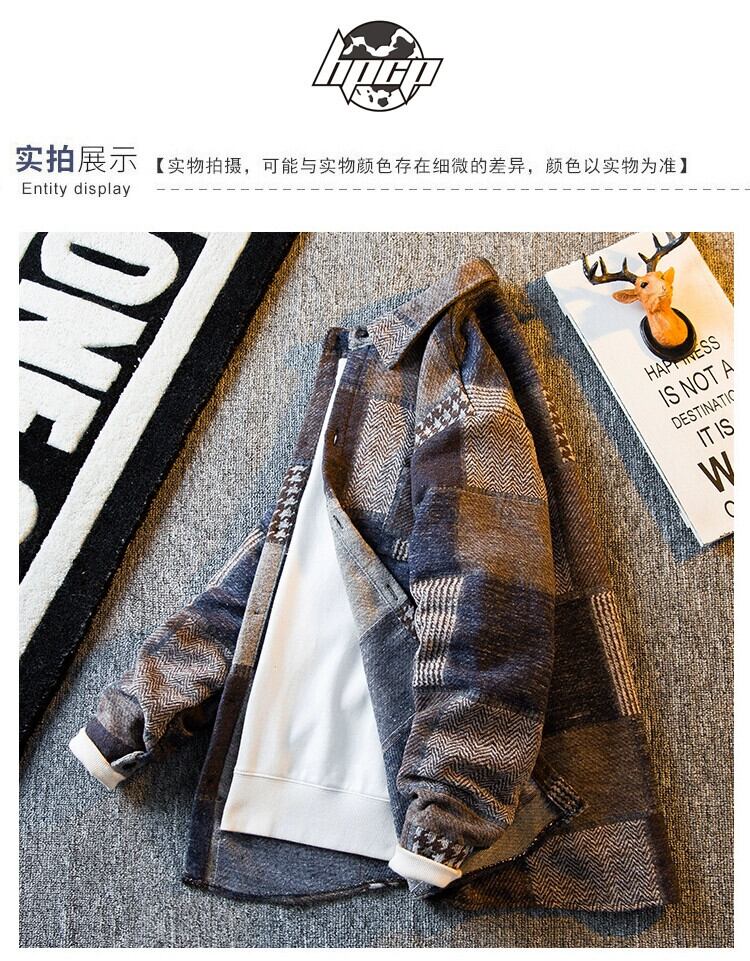HPCP チェック柄スプライシング起毛シャツメンズ長袖秋ハイエンドハンサムカジュアルトレンディウールシャツジャケット ロング オータム 秋物 3381962362939446