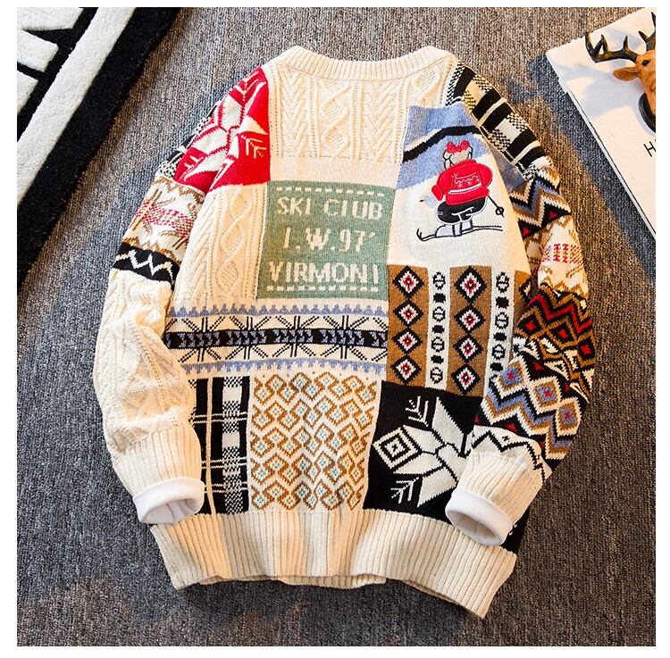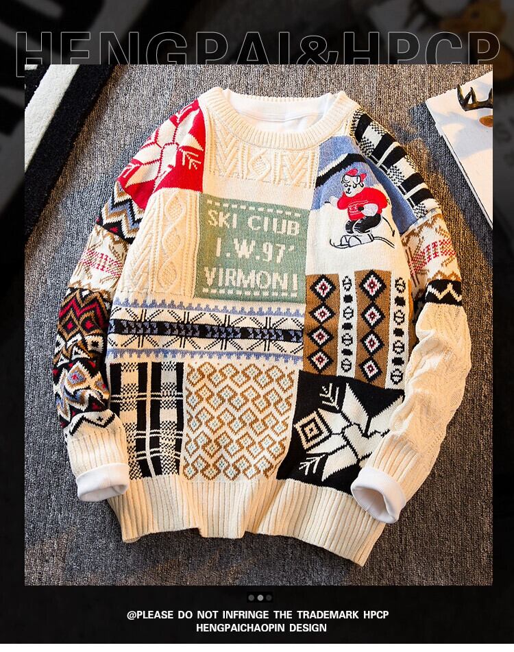 HPCP 冬の赤いセーターのメンズ ese スタイル怠惰なトレンド ブランド厚みのあるラウンドネックのカップルのニット セーター レッド ウィンター 冬物 Oネック 3381934874178198
