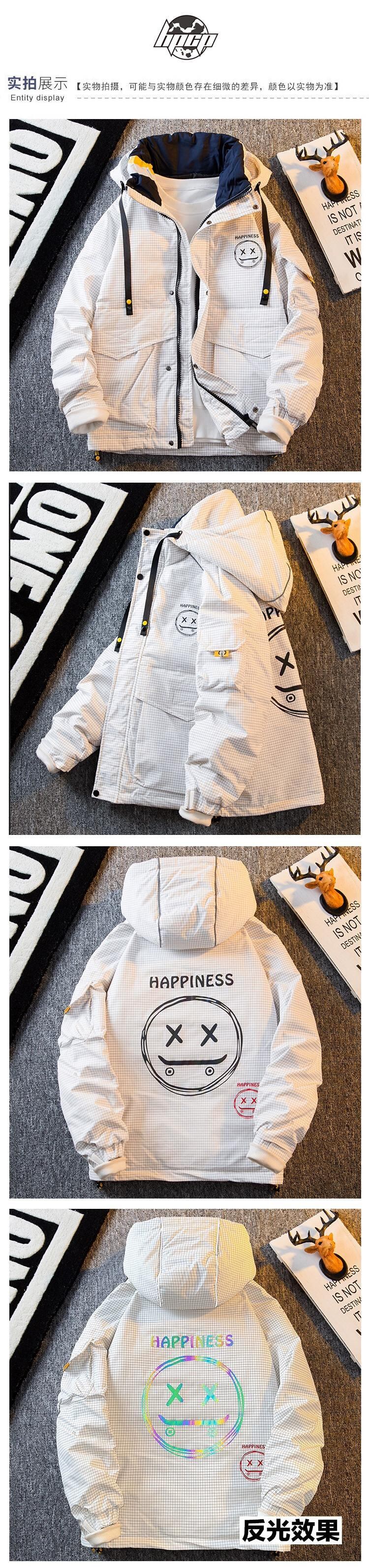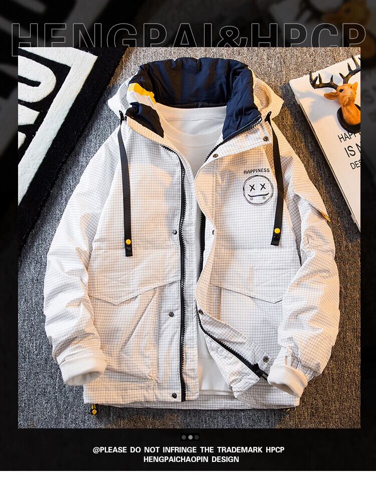 HPCP ホワイトダックダウン薄型ダウンジャケットメンズ冬トレンディブランドフード付きショートコットンジャケット暖かいコットンジャケットパイオーバーコート ウィンター 冬物 3381911601992584