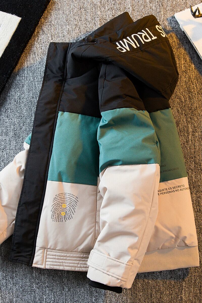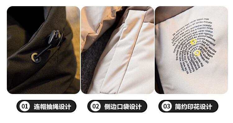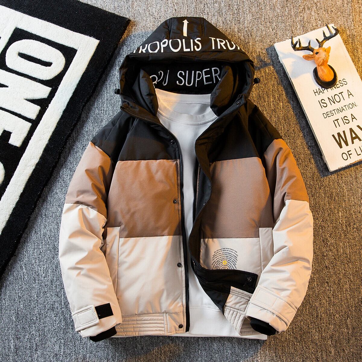 HPCP ショートダウンジャケットメンズ冬スプライシングトレンディなブランド肥厚フード付き防風綿入りジャケット冬のライトジャケット男性 コットン ウィンター 冬物 3381923064670018