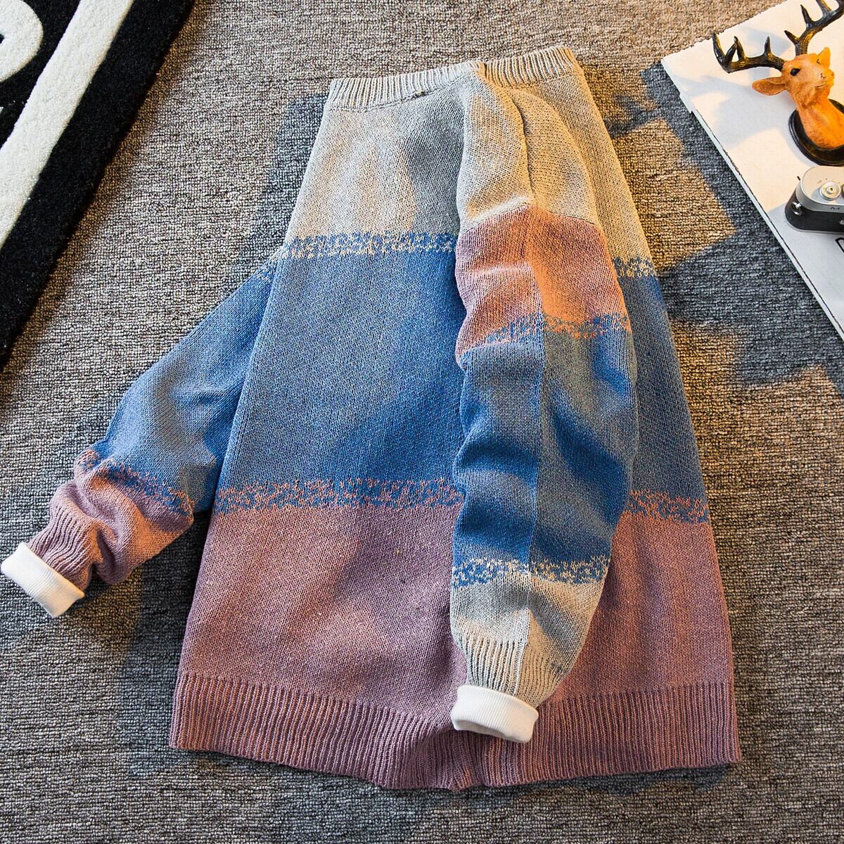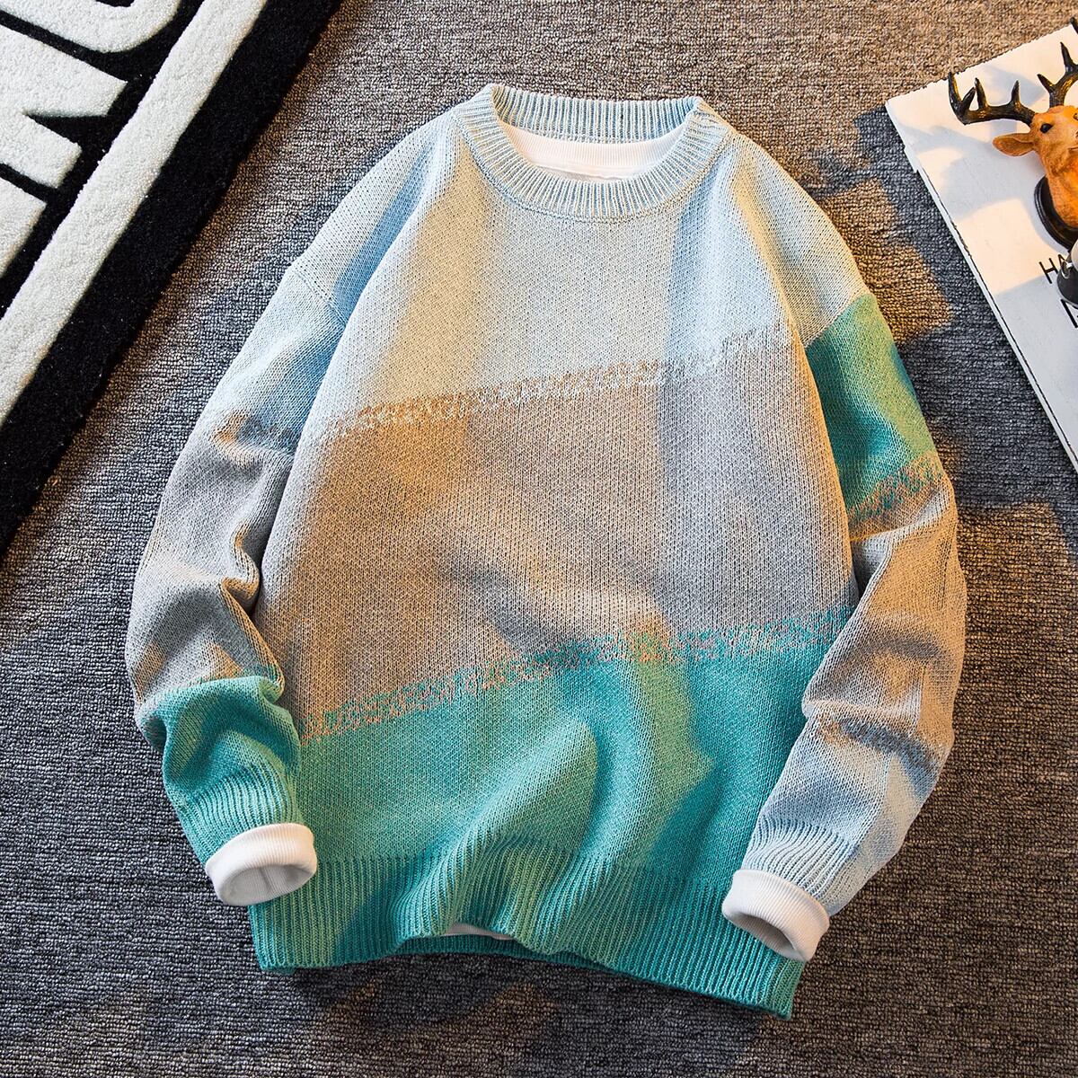 HPCP ese スプライスセーターメンズ秋ラウンドネックルーズ大きいサイズ怠惰なスタイルのハイエンドボーイズプルオーバーセーター 大きめサイズ オータム 秋物 Oネック 3381975950570212