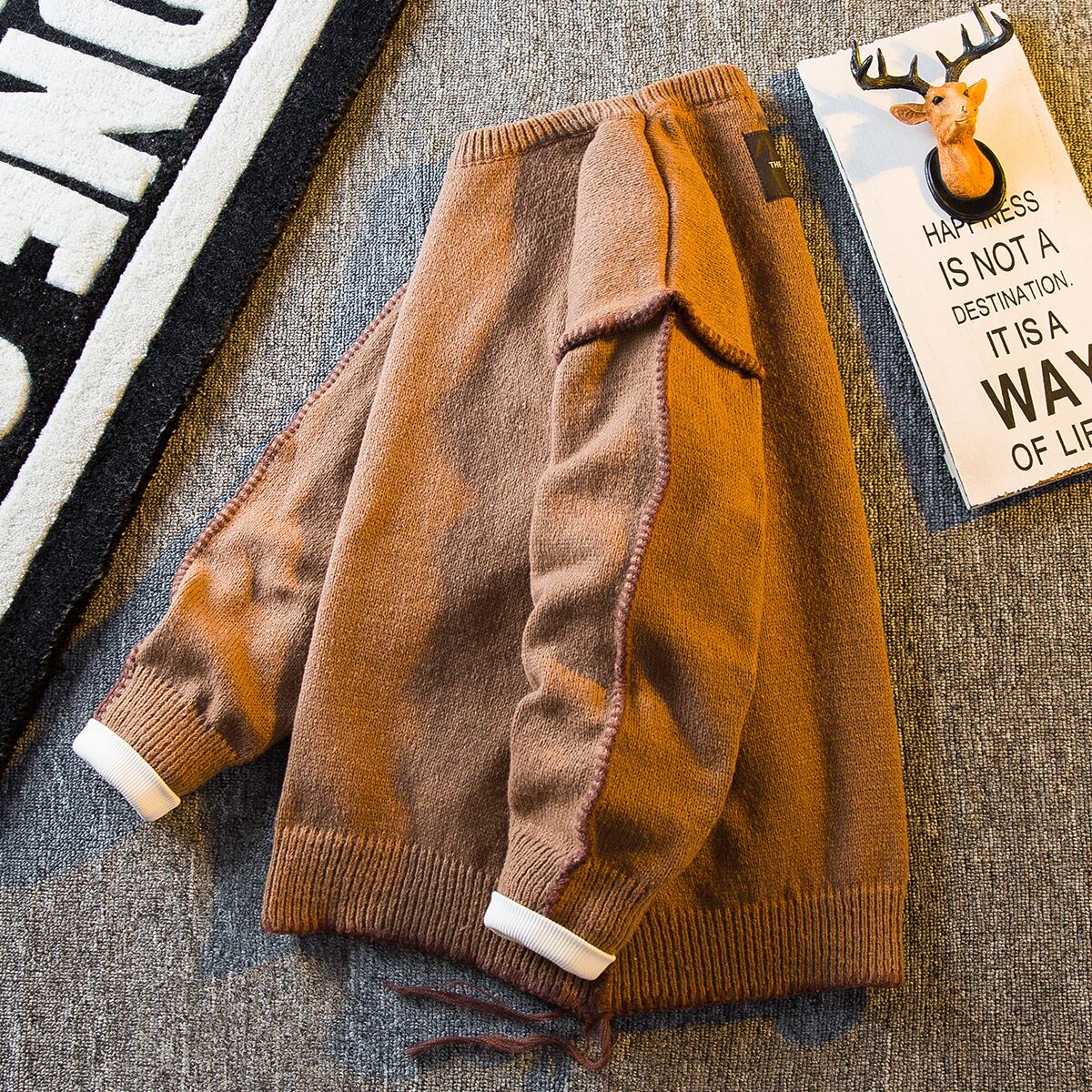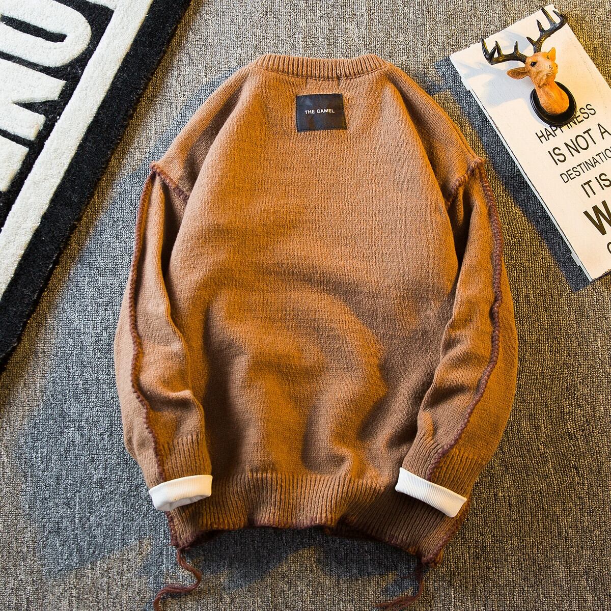 秋と冬のHPCPレトロブラウンセーターメンズ、怠惰なファッションブランドラウンドネックルーズニットセーターとジャケットメンズ オータム 秋物 ウィンター 冬物 Oネック 3381964422687051