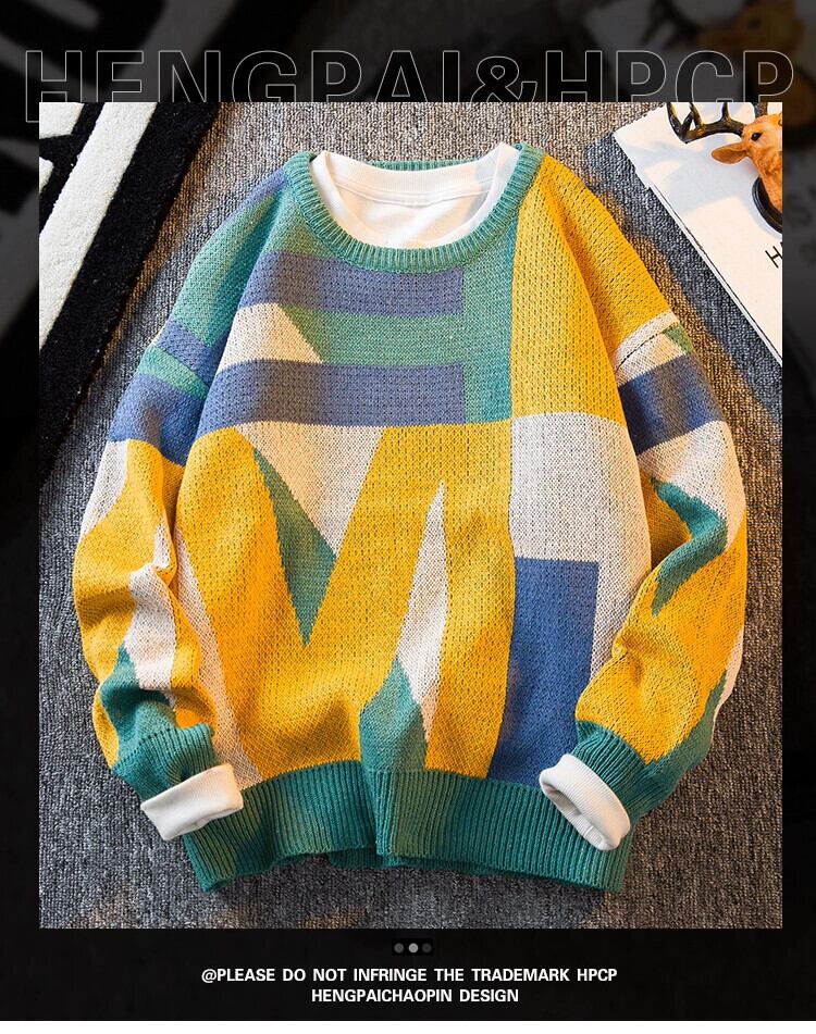 HPCP セーターメンズトレンディなブランド冬デザインニッチラウンドネックプルオーバーセーターレトロ怠惰なハイエンドセーター ウィンター 冬物 Oネック 3381945961483650