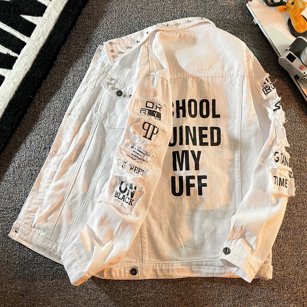 ホワイトデニムジャケットメンズトレンディブランド2022春新作トレンディカジュアルトップスメンズデニムジャケット スプリング 春物 3381911751068992