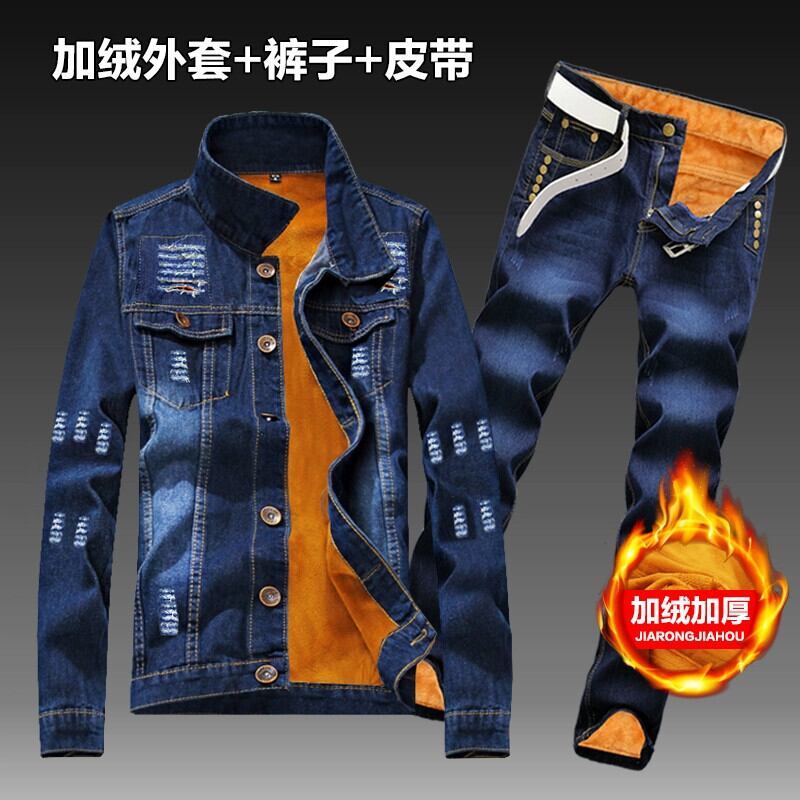 冬のメンズベルベット肥厚デニムジャケット服セットカジュアル秋と冬暖かいトップスジャケット冬服 オータム 秋物 ウィンター 冬物 3381957095826728