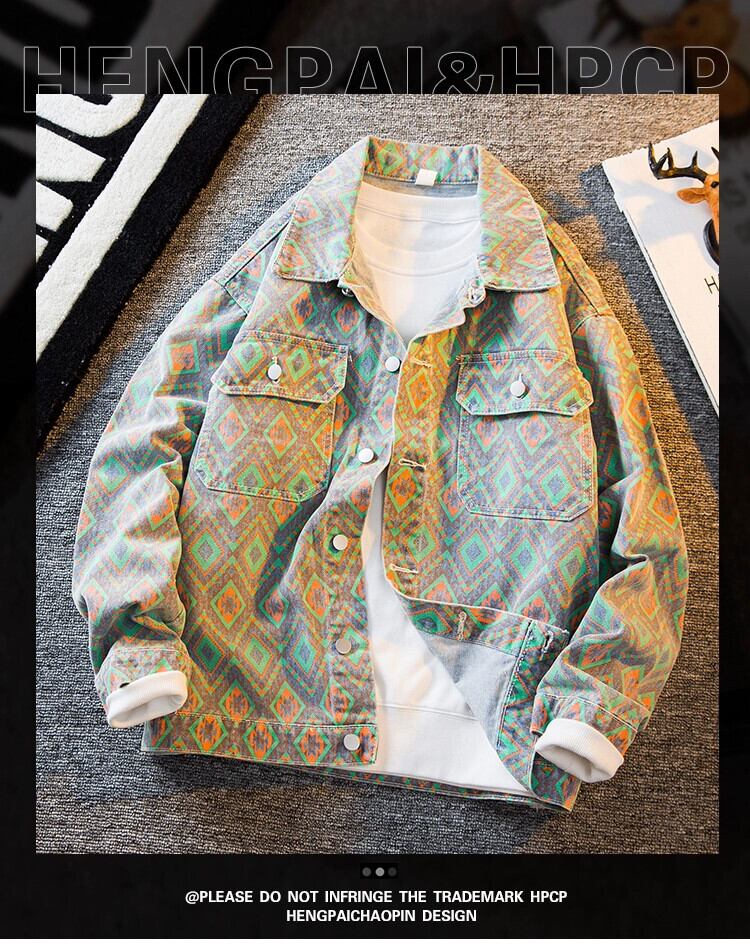 デニムジャケットメンズ春秋トレンディブランドハンサムハイエンドトレンディ多用途プリントメンズカジュアルジャケット服メンズ スプリング 春物 オータム 秋物 3381924319176833