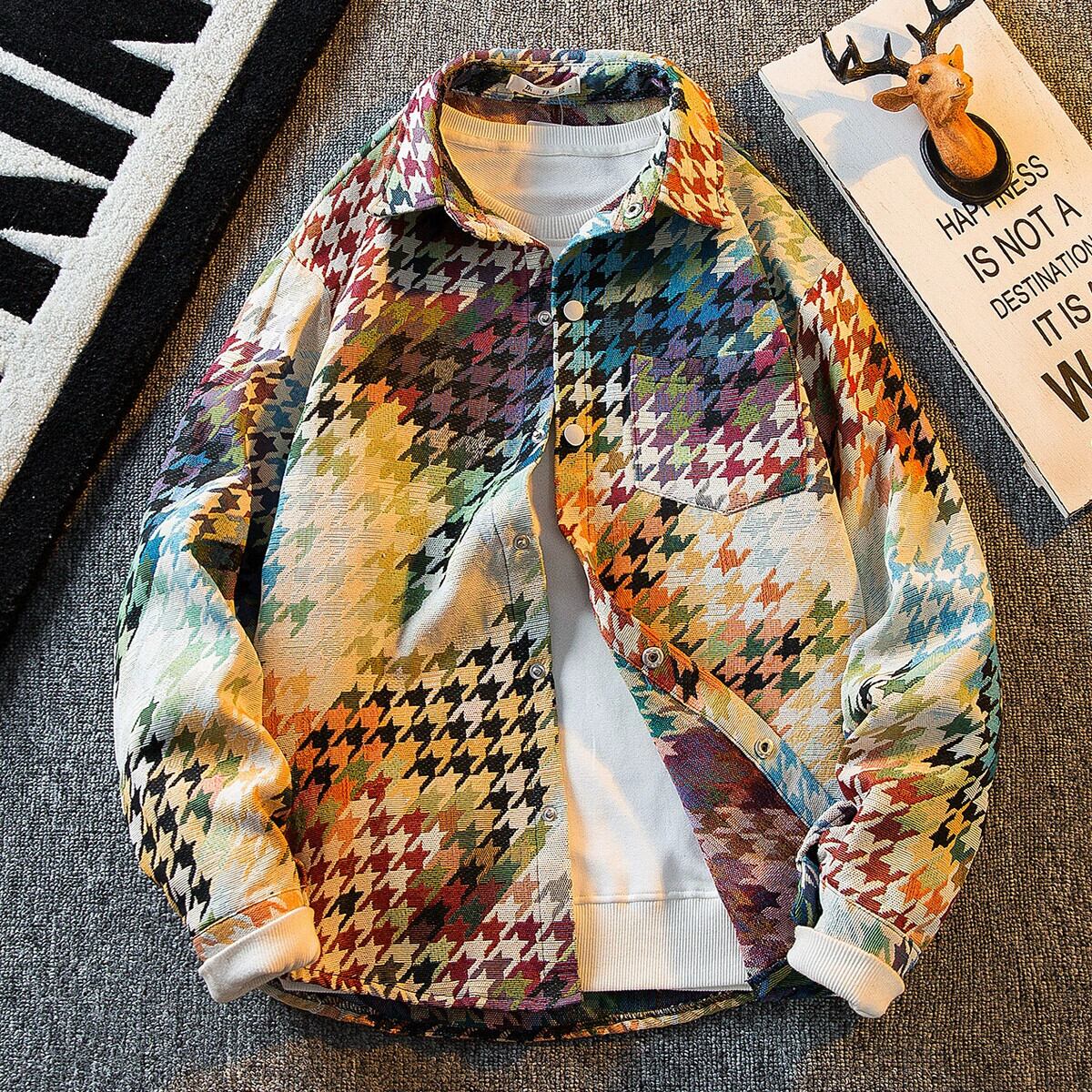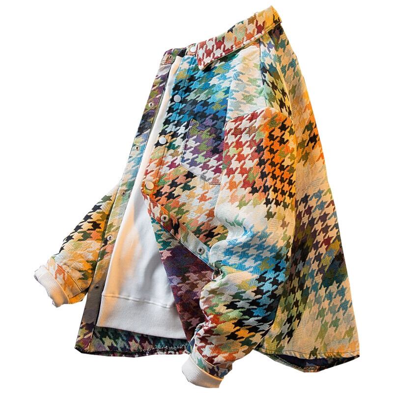 HPCP グラデーション千鳥格子シャツメンズ長袖秋の新ハイエンドハンサムルーズチェック柄シャツジャケット男性 ロング オータム 秋物 3381925158081737