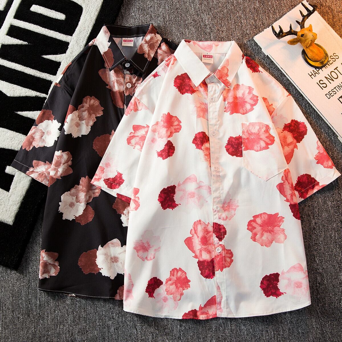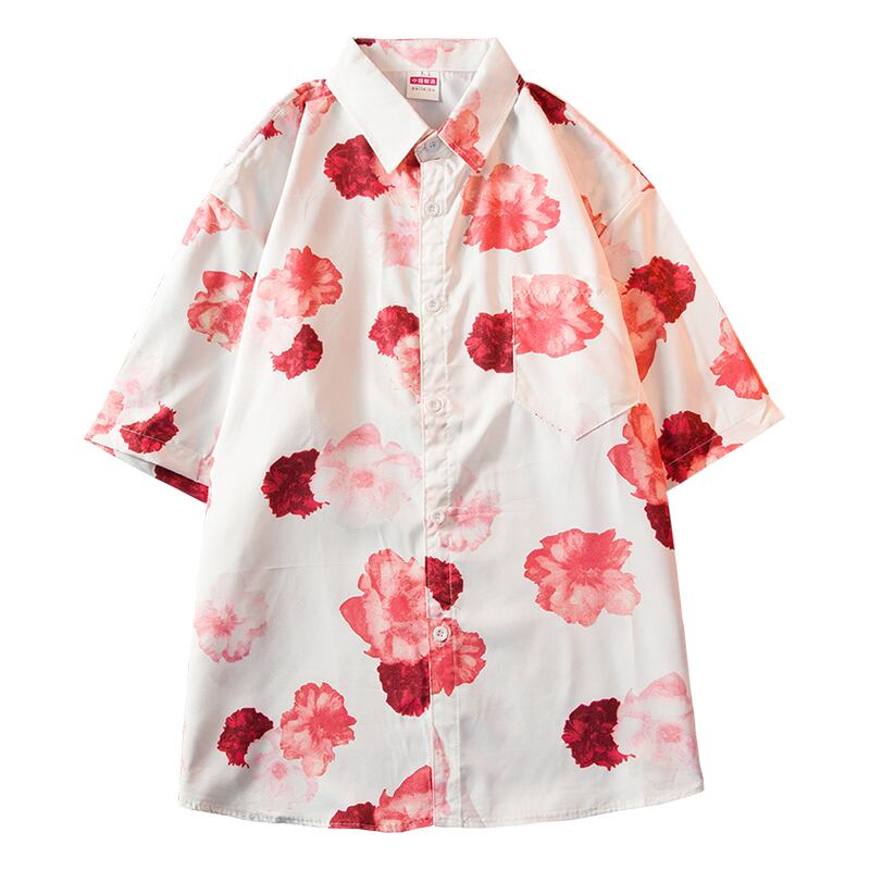アメリカンヴィンテージフラワーシャツメンズアイスシルク夏薄いデザインニッチレトロカップルフラワーシャツトレンディなP サマー 夏物 フラワーデザイン ビンテージ 3381910206291186