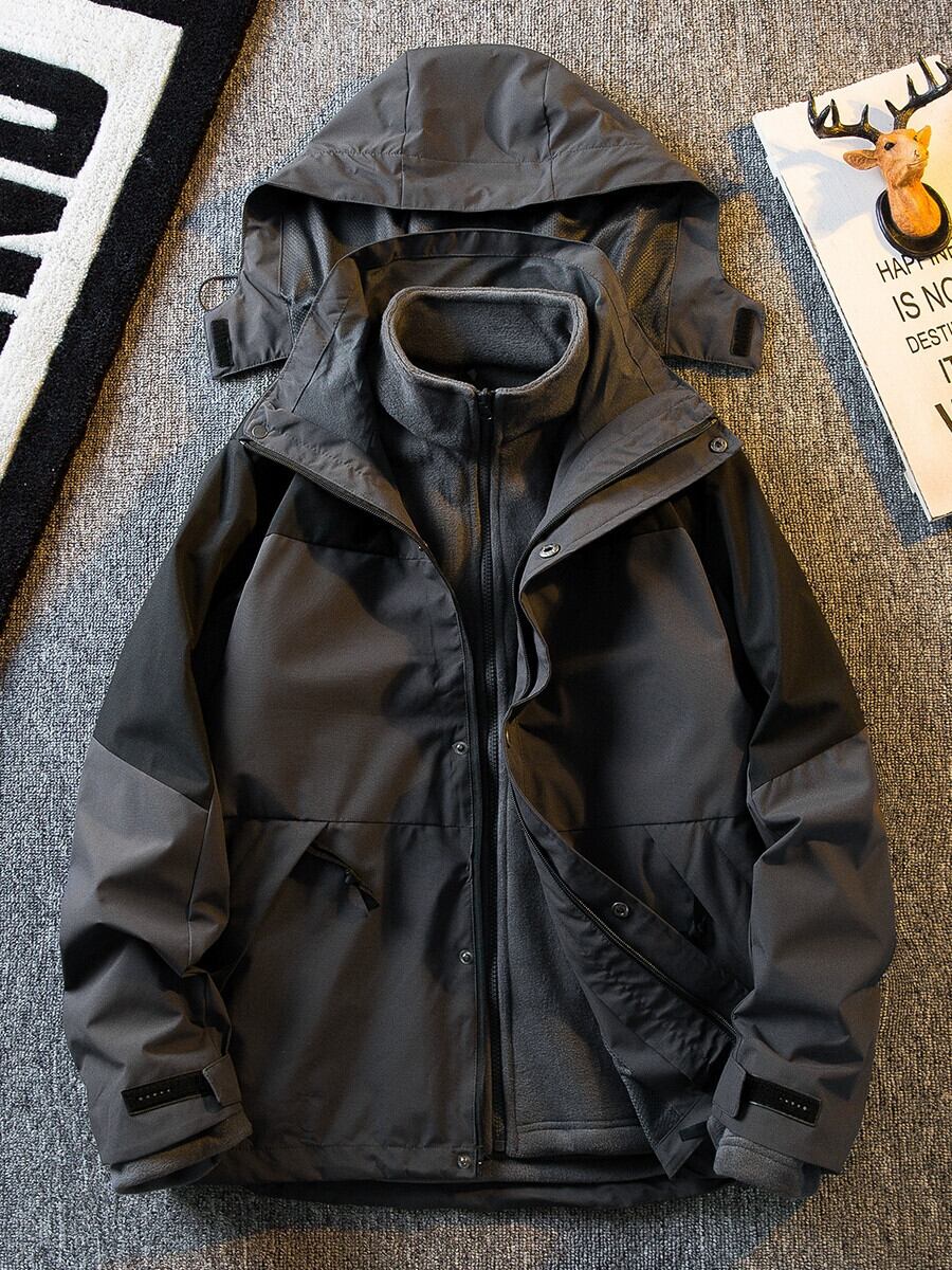 HPCP 屋外ソフトシェルジャケットスリーインワンメンズ冬プラスベルベット取り外し可能な作業服防水防風ジャケット男性 ウィンター 冬物 3381912474547010
