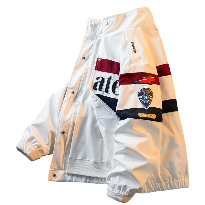 HPCP アメリカンヴィンテージ刺繍レーシングスタイルジャケットメンズトレンディなブランドカップルオートバイスタンドカラーボンバージャケット男性 レッド ビンテージ 3381938776207458