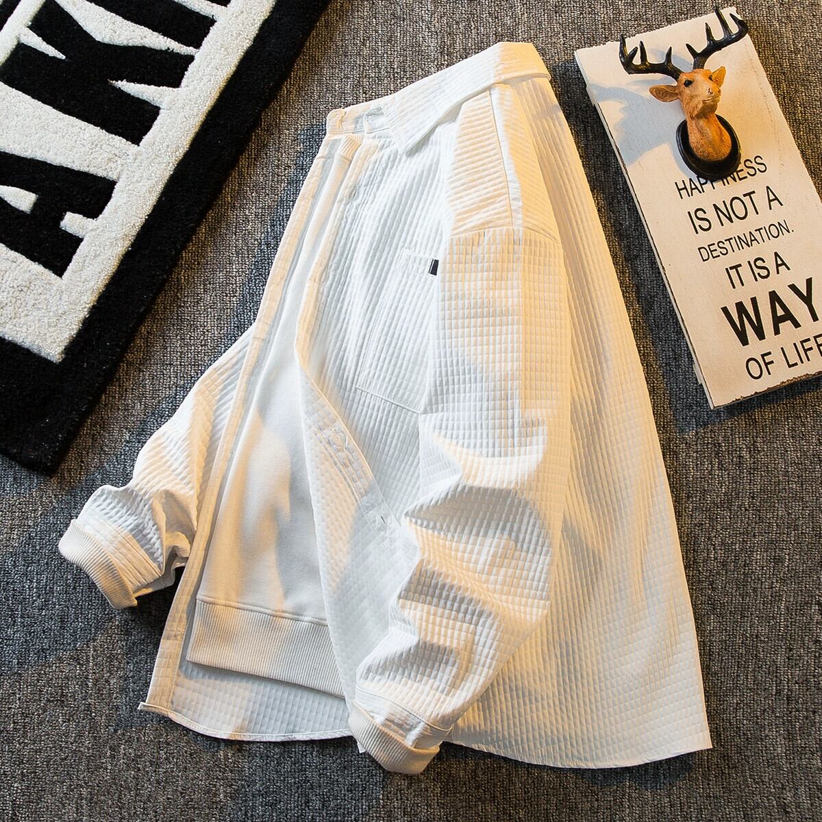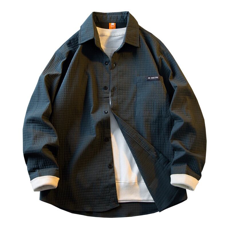 HPCP ワッフル粒状シャツメンズ長袖春秋ハイエンドトレンディブランドボーイズ無地チェック柄シャツジャケット ロング スプリング 春物 オータム 秋物 ソリッドカラー 3381924224637629