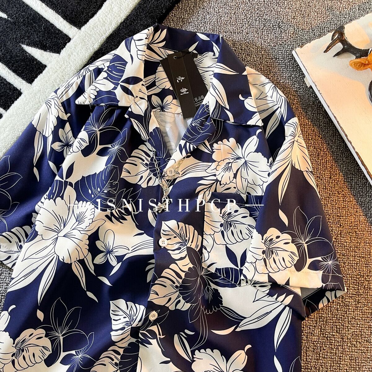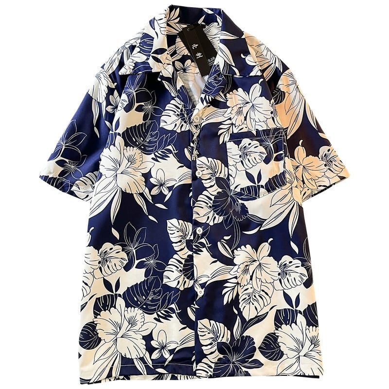 アイスシルクフラワーシャツメンズイントレンドハイエンドハンサムデザイン香港スタイルサマービーチキューバンカラー半袖シャツH 夏物 フラワーデザイン 3381961928203112