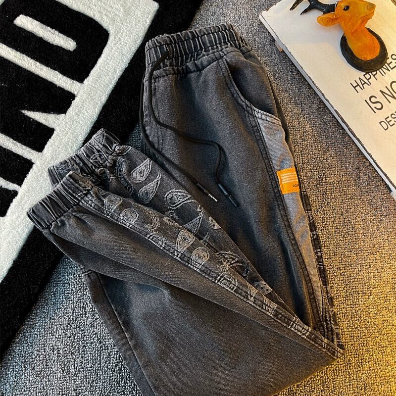 ジーンズ メンズ 夏 薄手 ゆったり トレンド ブランド インス トレンド ウエストゴム 巾着 レギンス メンズパンツ 9点パンツ U エラスティック 伸縮 サマー 夏物 3381929135748003