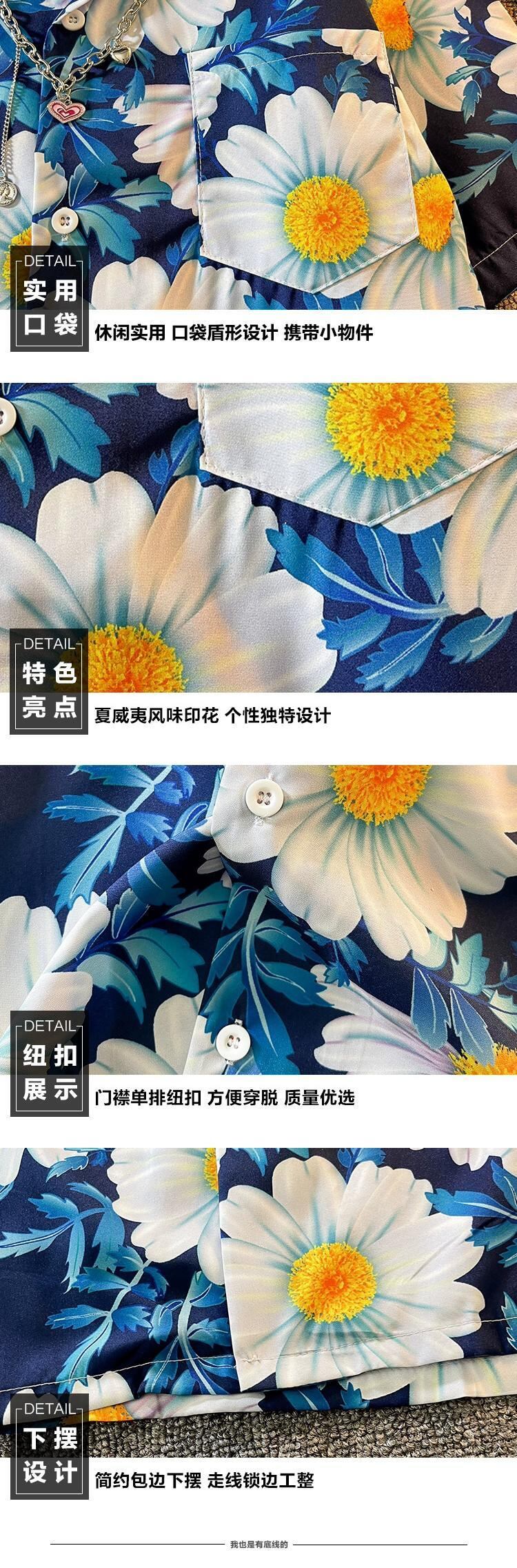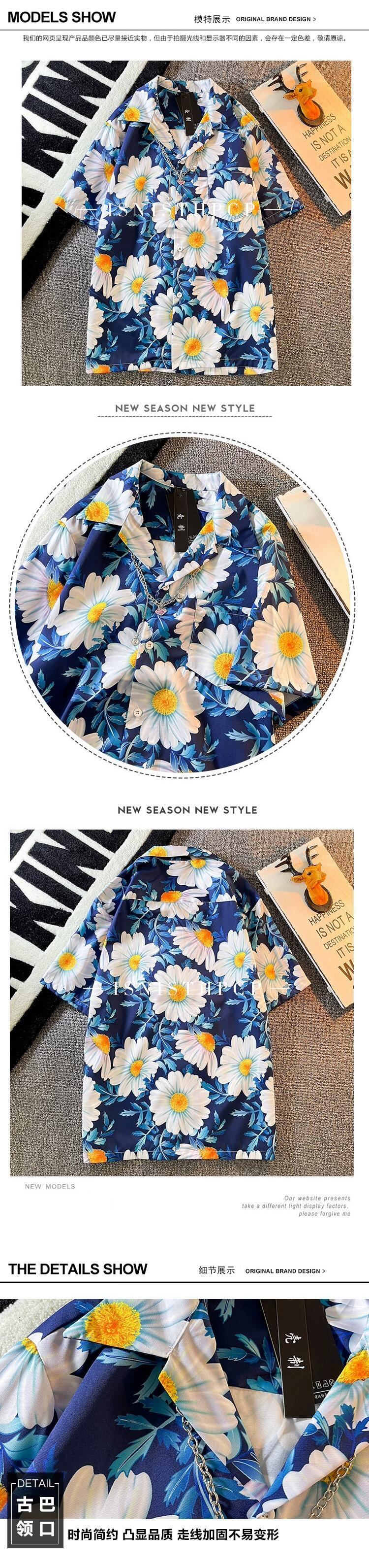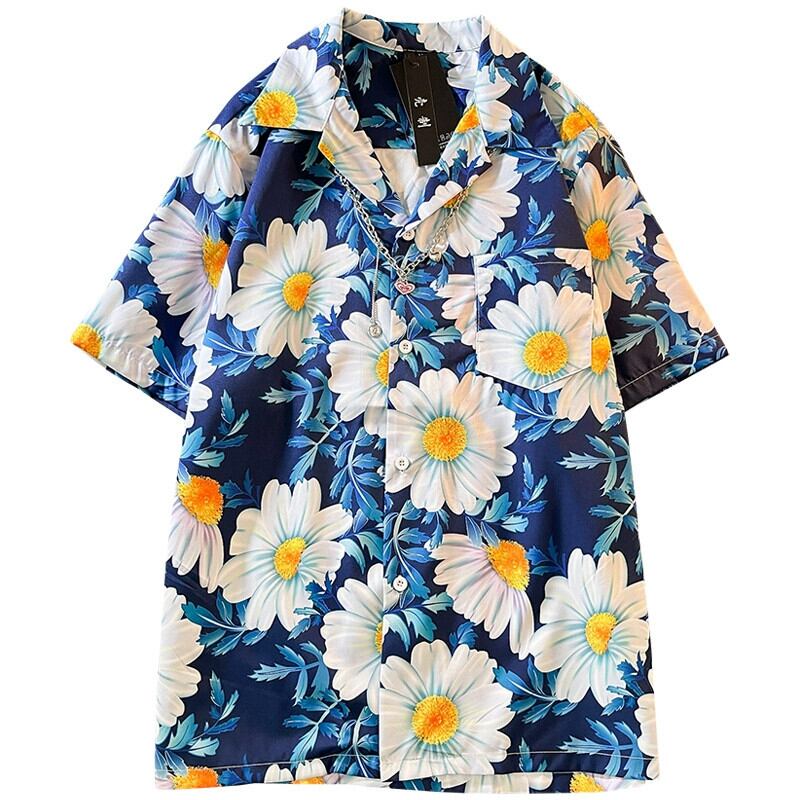 レトロヴィンテージ夏半袖花柄シャツインハンサムルーズカップル香港スタイルハワイアン日焼け防止シャツトレンディ サマー 夏物 ビンテージ 3381936091589066