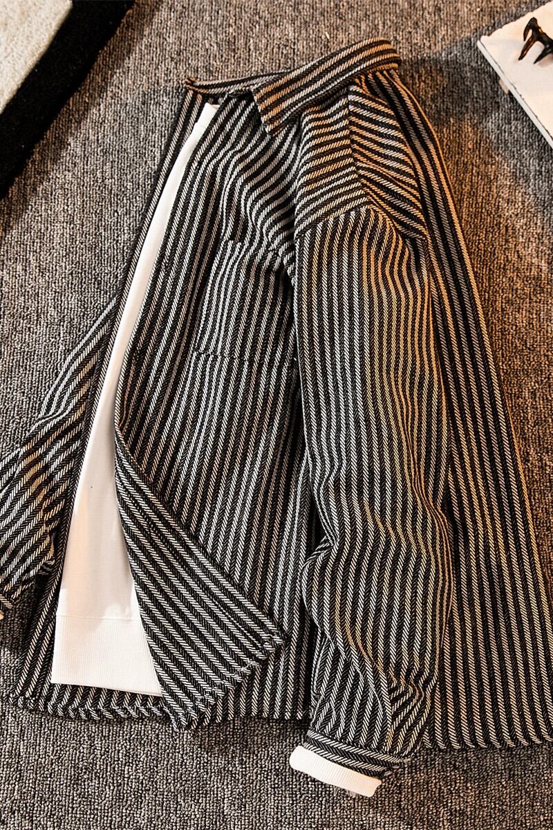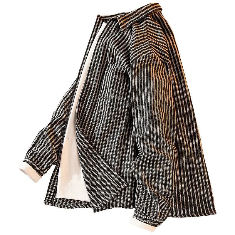 ストライプシャツメンズハイエンド ese レトロハンサムトレンディブランドイン秋長袖カジュアルシャツ薄手ジャケット ロング オータム 秋物 3381955276952457