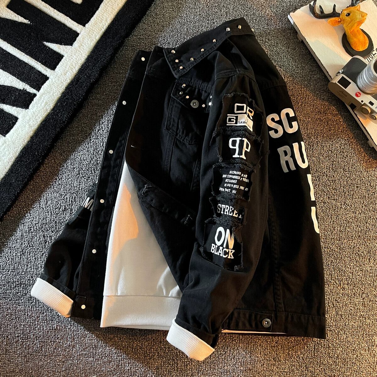 ブラックデニムジャケットメンズトレンディブランド2022春新スタイルトレンディハンサム多用途カジュアルジャケット服 スプリング 春物 3381994930485305