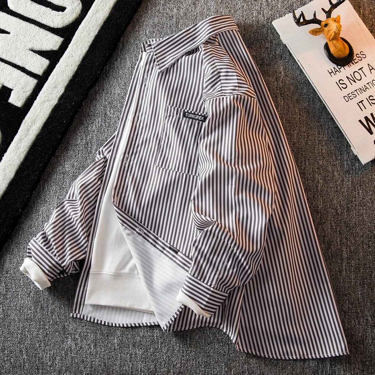 HPCP ese cityboy シャツメンズ長袖カジュアルルーズハンサムイン香港スタイルストライプシャツジャケット男性 ロング 3381944615492021