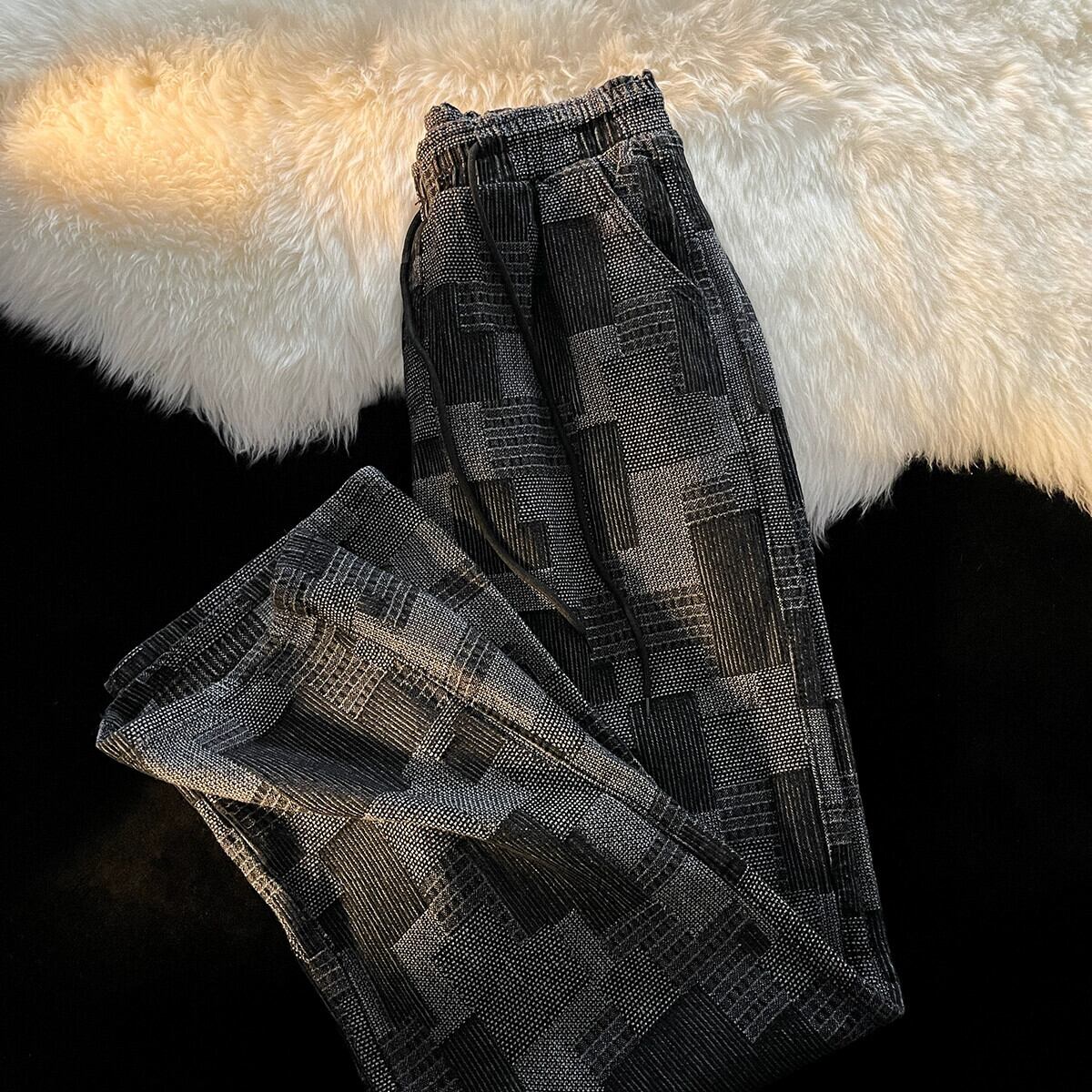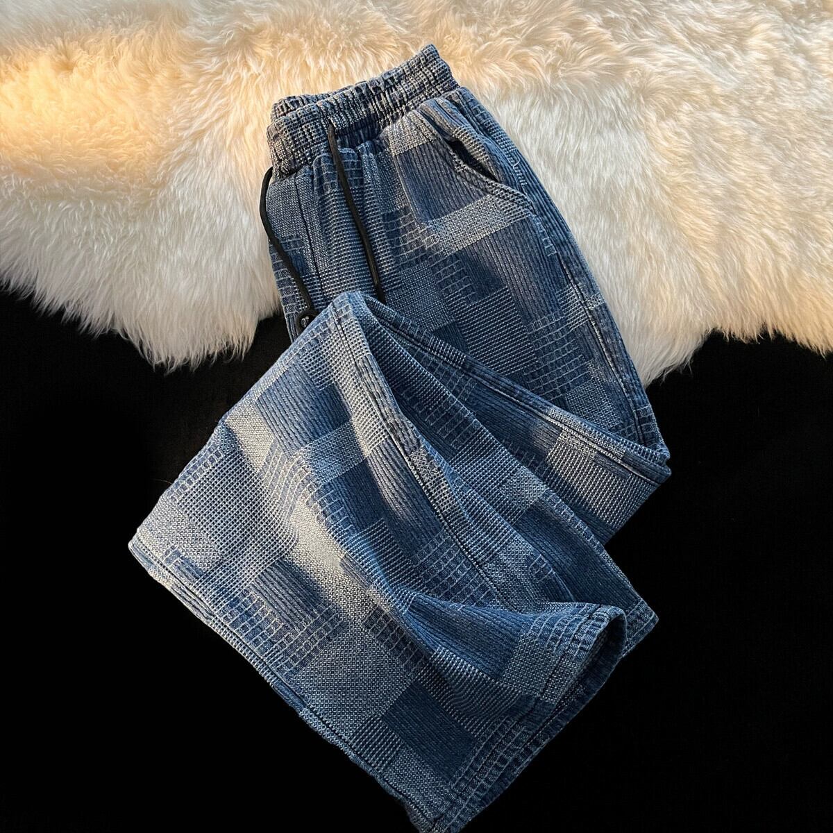 パンツメンズ夏薄いストレートジーンズ緩いトレンディなブランドインデザインニッチハンサムワイドレッグチェック柄パンツ サマー 夏物 ワイドパンツ 3381961540644976