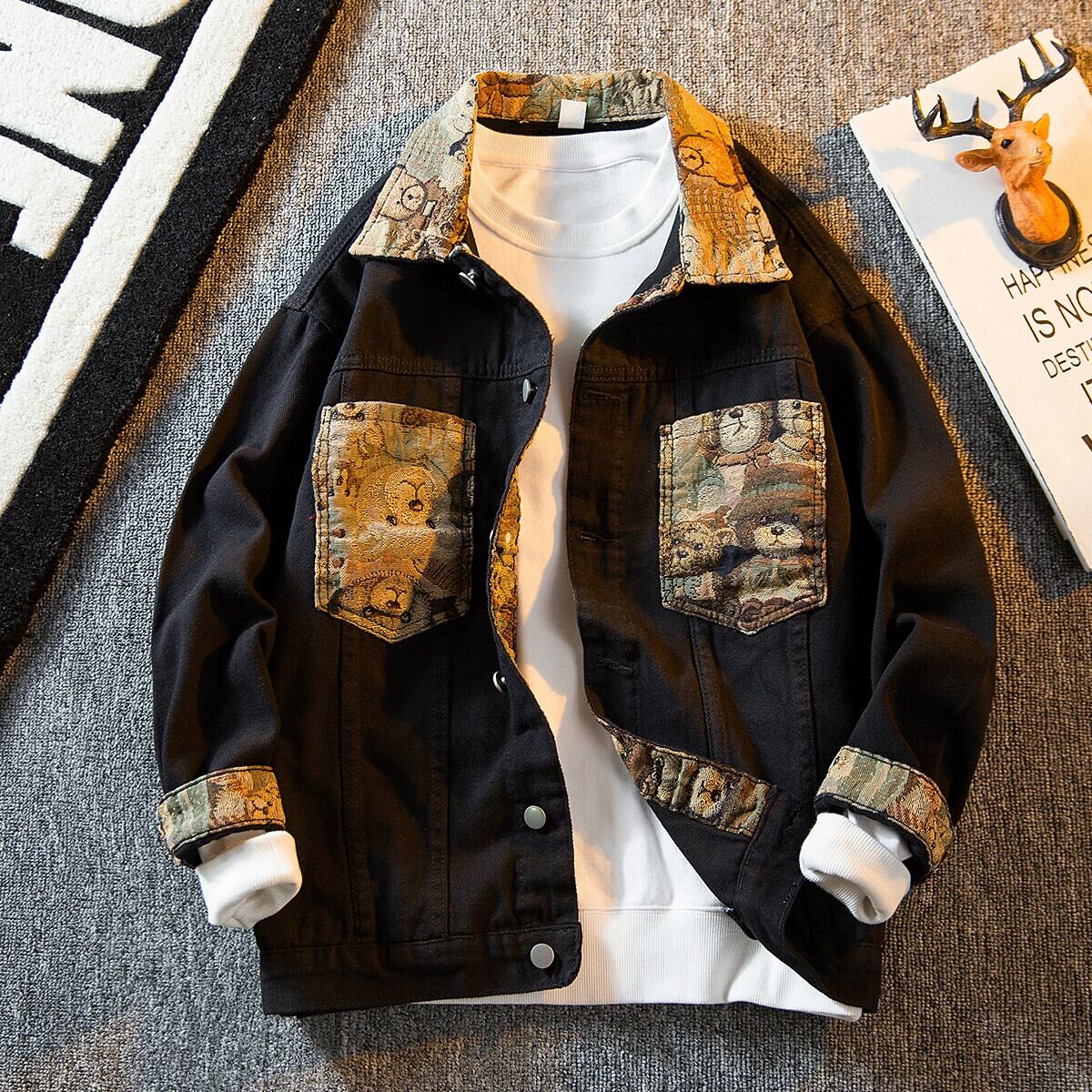 HPCP アメリカンレトロクマデニムジャケットメンズルーズ秋トレンディブランドオーバーサイズハイストリートカジュアルジャケットメンズ オータム 秋物 3381914901378788
