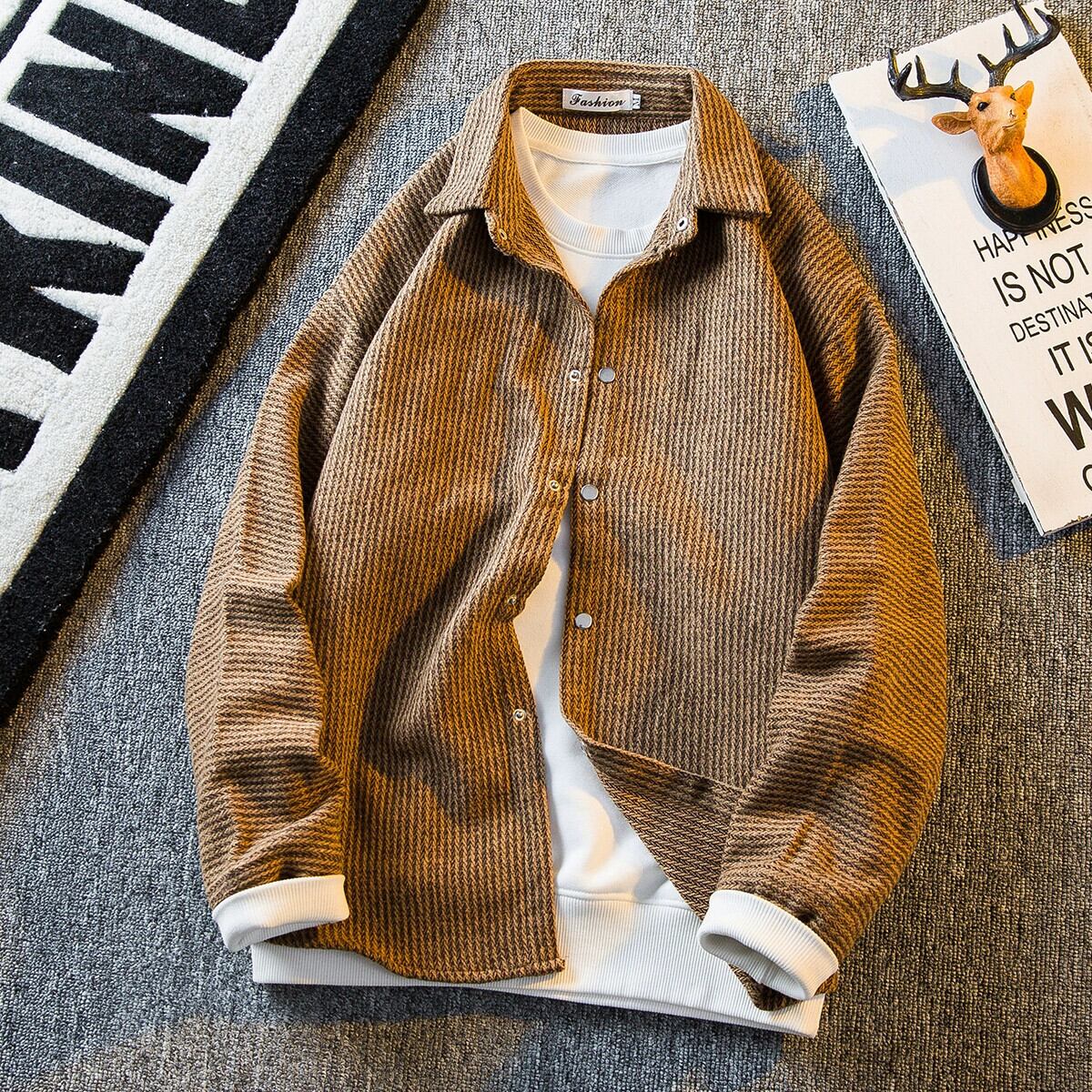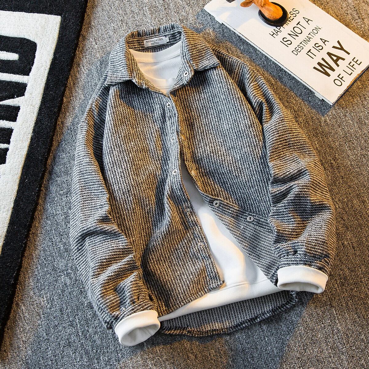 HPCP 起毛ストライプシャツメンズ長袖春ハイエンド ese レトロファッションブランドカジュアル薄手シャツジャケット ロング スプリング 春物 3381997113869602