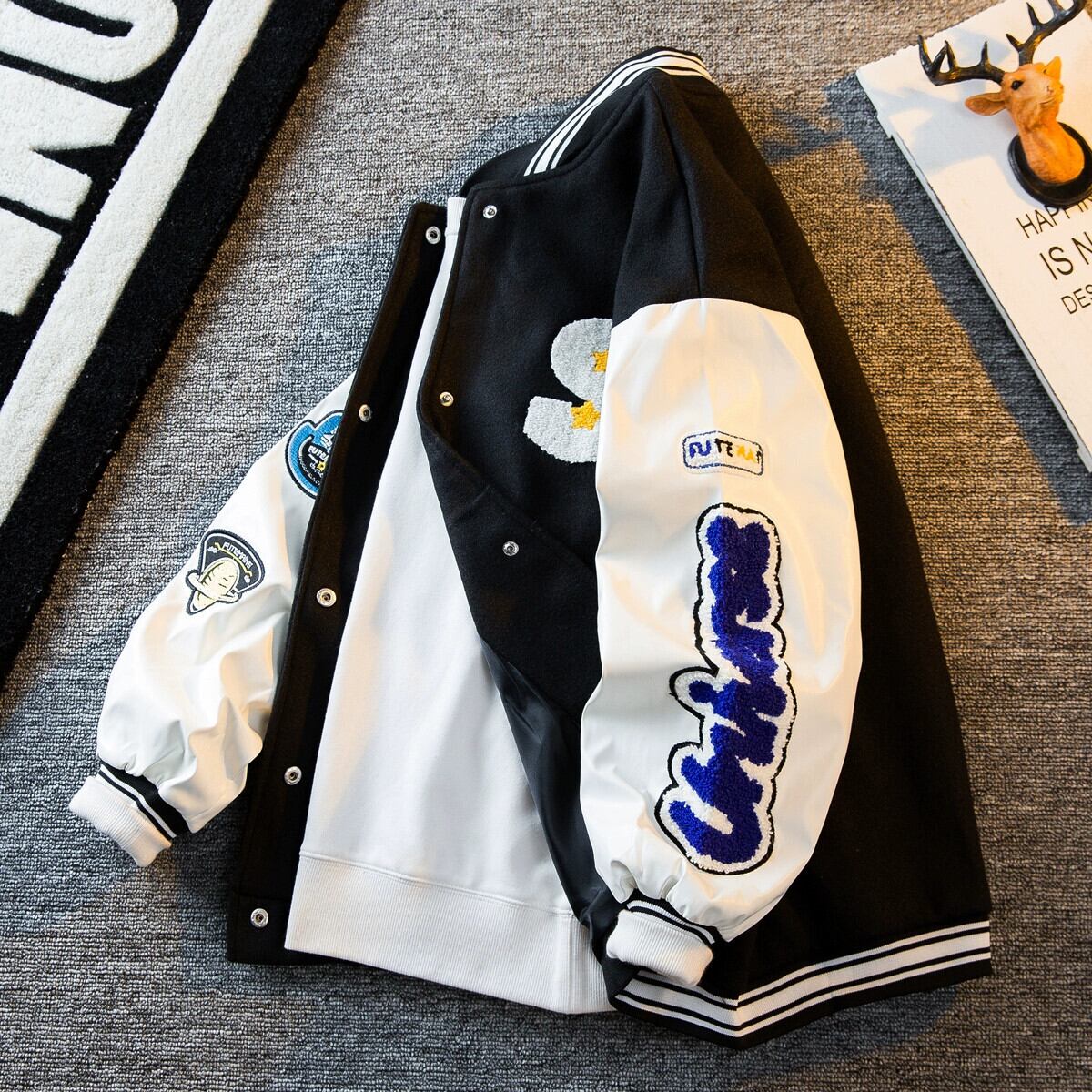 HPCP クラインブルーステッチ刺繍ジャケットメンズ秋アメリカンハイストリートイントレンディな野球ユニフォームカジュアルジャケット レッド オータム 秋物 3381950367347316