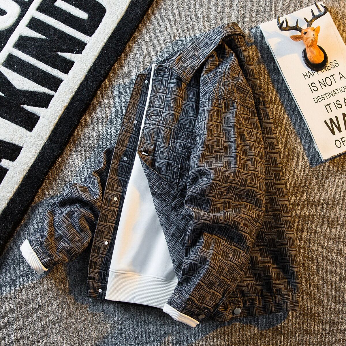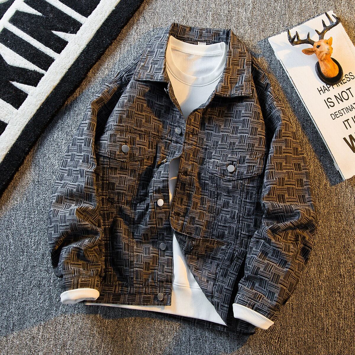 HPCP レトロチェック柄デニムジャケットメンズ春トレンディブランドデザインニッチジャケットトレンディな多目的カジュアル服 スプリング 春物 3381942989359432
