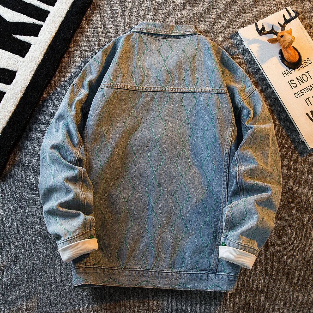 HPCP アメリカンレトロエスニックスタイルデニムジャケットメンズ、ハイエンドトレンディブランドインハイストリートルーズカジュアルジャケットメンズ 3381937711701178