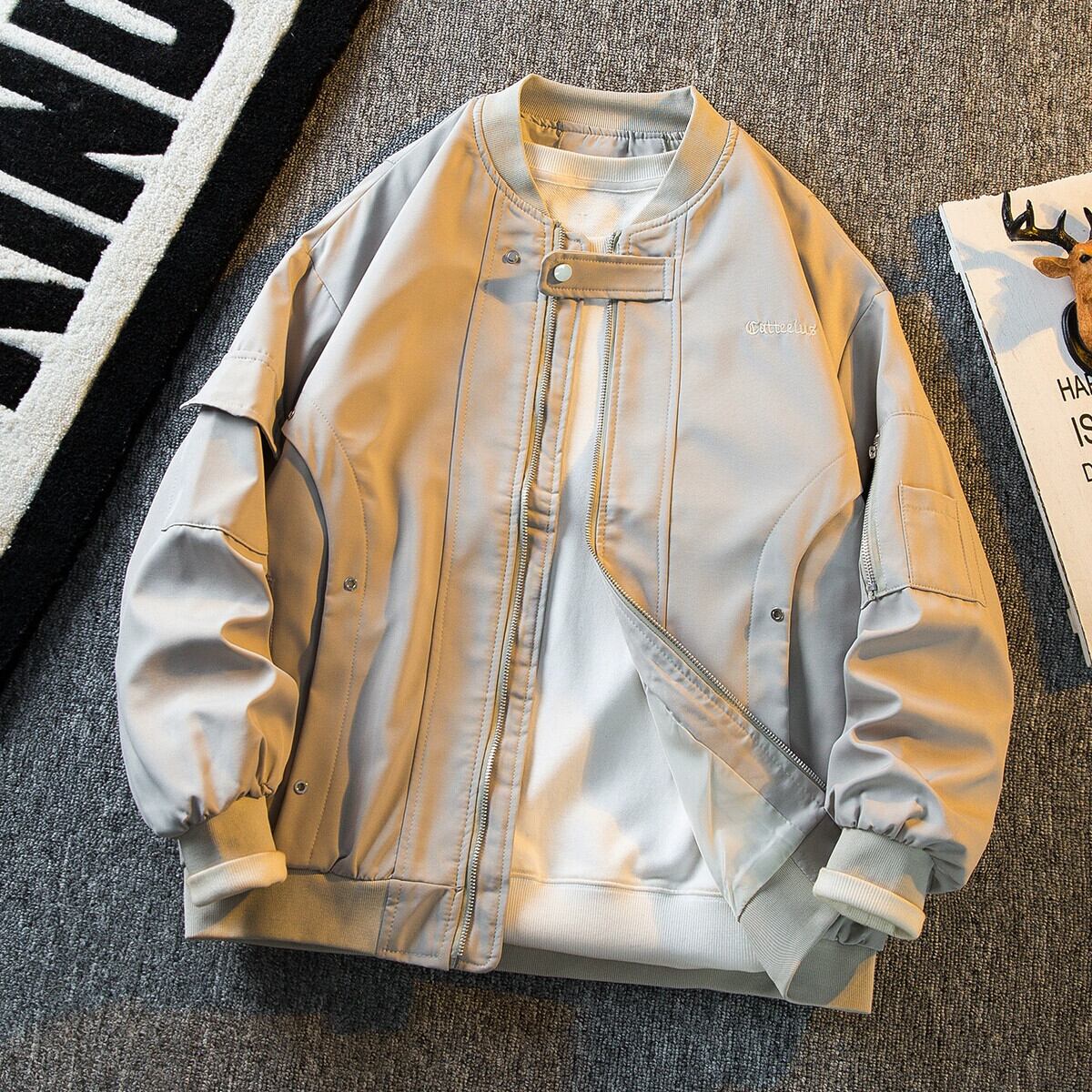 HPCP ヘビーミリタリーカラーボンバージャケットメンズ野球ユニム春と秋のハイエンドトレンディブランドメンズタフガイワークウェアジャケット スプリング 春物 オータム 秋物 3381937539634810