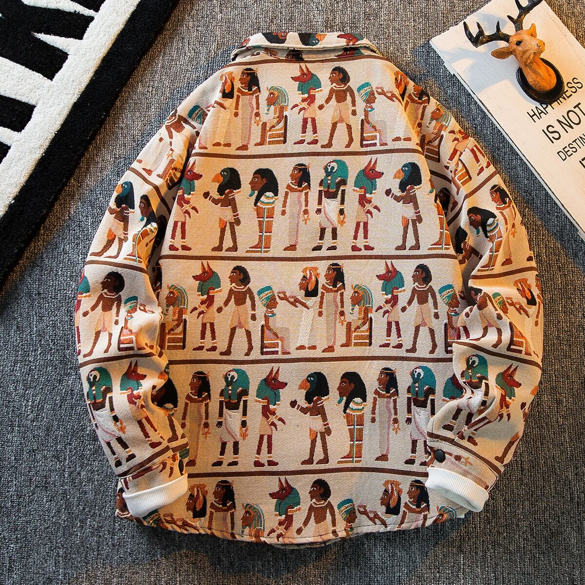 HPCP 古代エジプトヴィンテージレトロシャツメンズ長袖 ese トレンディなブランドカジュアルヴィンテージエスニックシャツジャケット ロング ビンテージ 3381931619156719