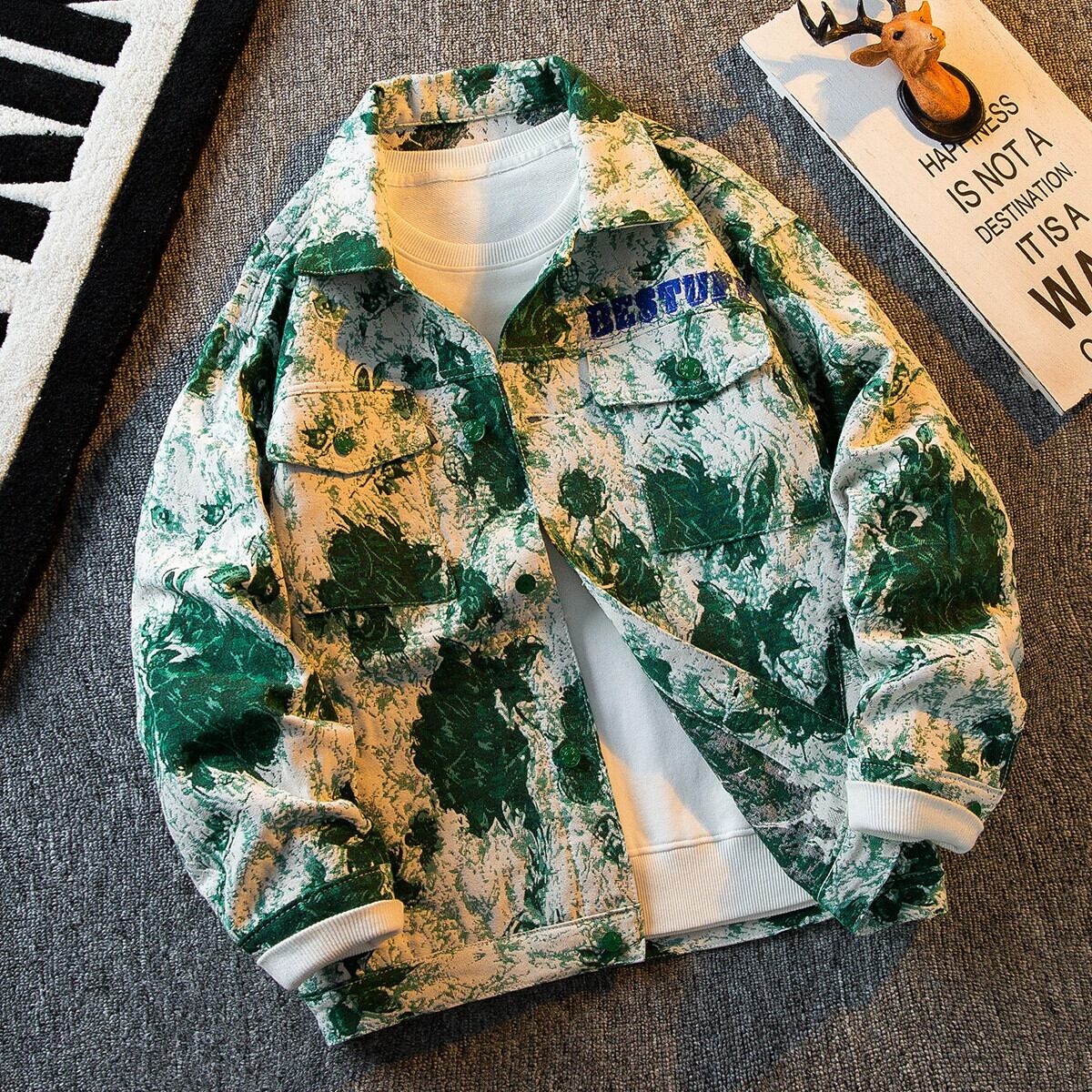 HPCP タイダイスノーフレーク刺繍デニムジャケットメンズ春と秋のトレンディなブランドインハイエンドルーズハイストリートカジュアルジャケット レッド スプリング 春物 オータム 秋物 3381927753480494