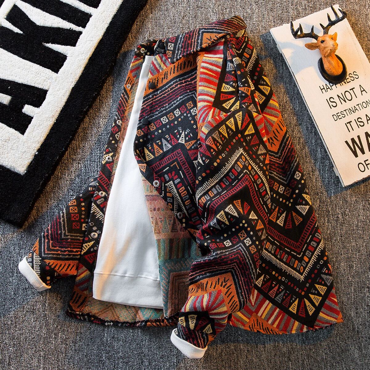 HPCP 高耐久高密度織シャツメンズハイエンドレトロエスニックスタイル長袖シャツトレンディな服ジャケット ロング 3381996502129531