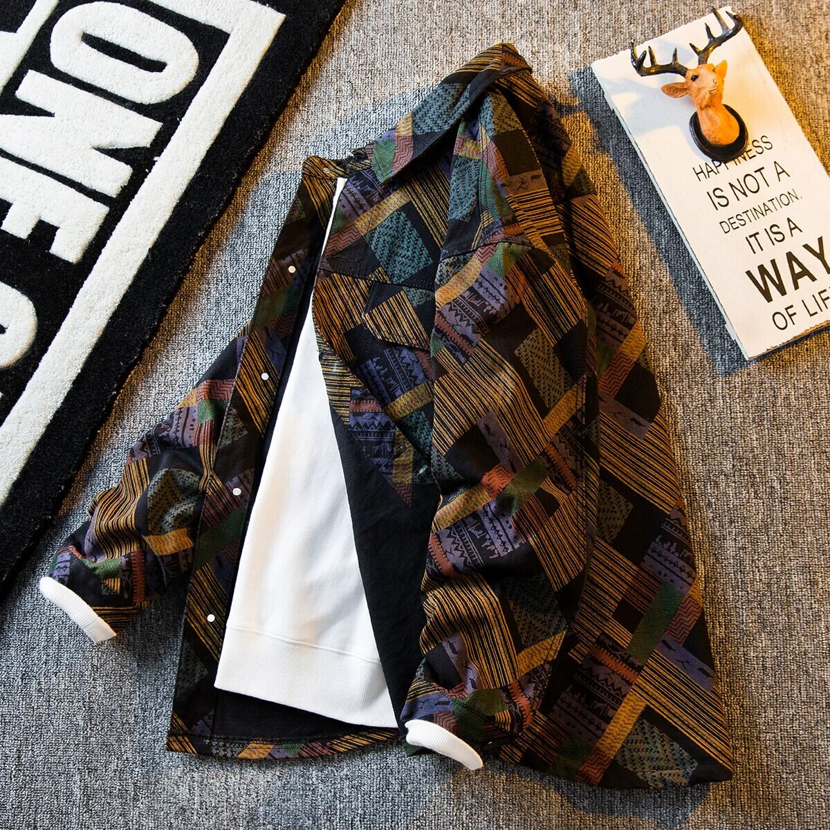 HPCP カラープリントチェック柄デニムジャケットメンズ秋の新作トレンディブランドハイエンドハンサムメンズプリントカジュアルジャケット オータム 秋物 3381926372442522
