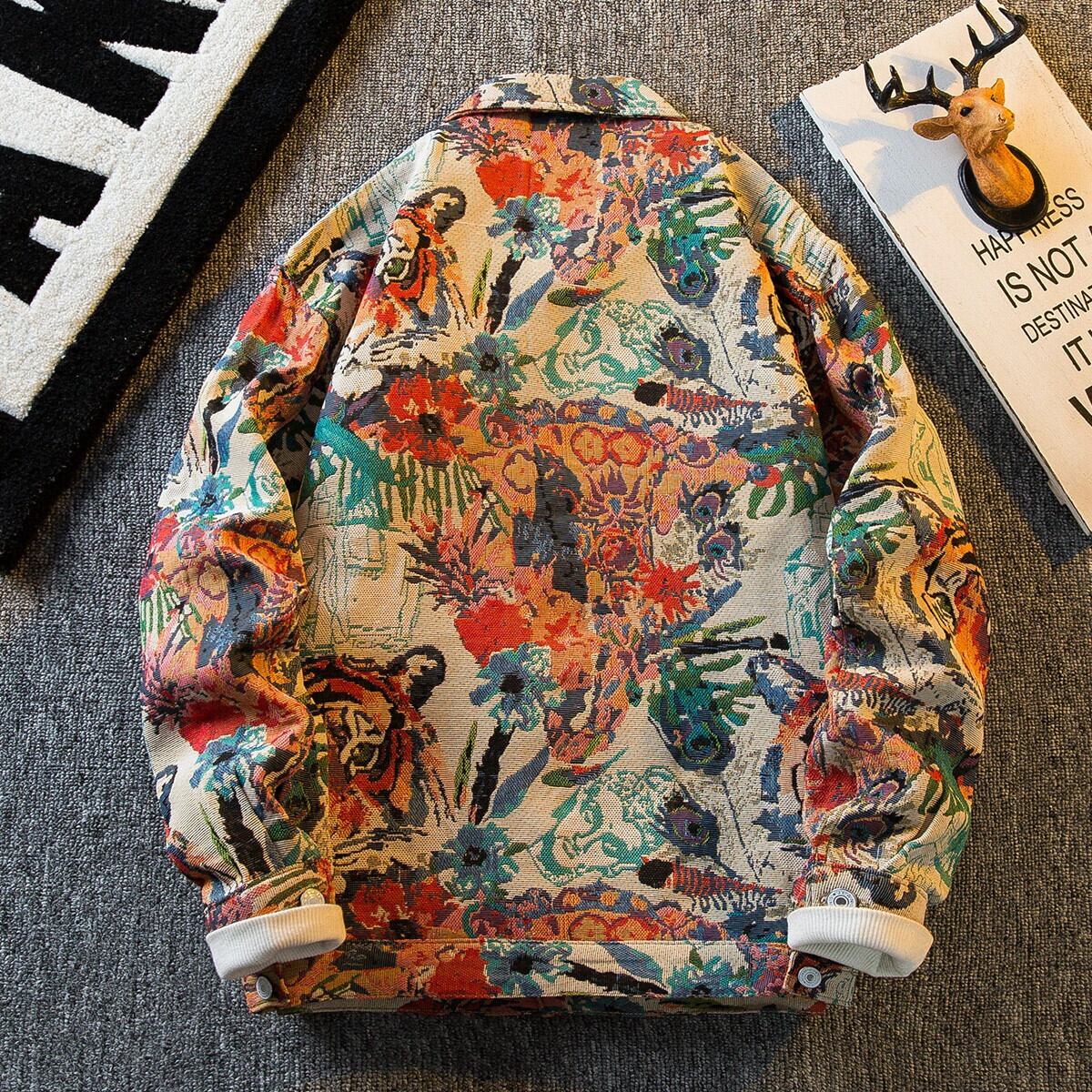 HPCP 全国トレンドタイガージャカードデニムジャケットメンズ春と秋のファッションブランドメンズスタイルのトレンディなカジュアルジャケット服 スプリング 春物 オータム 秋物 3381920580632626