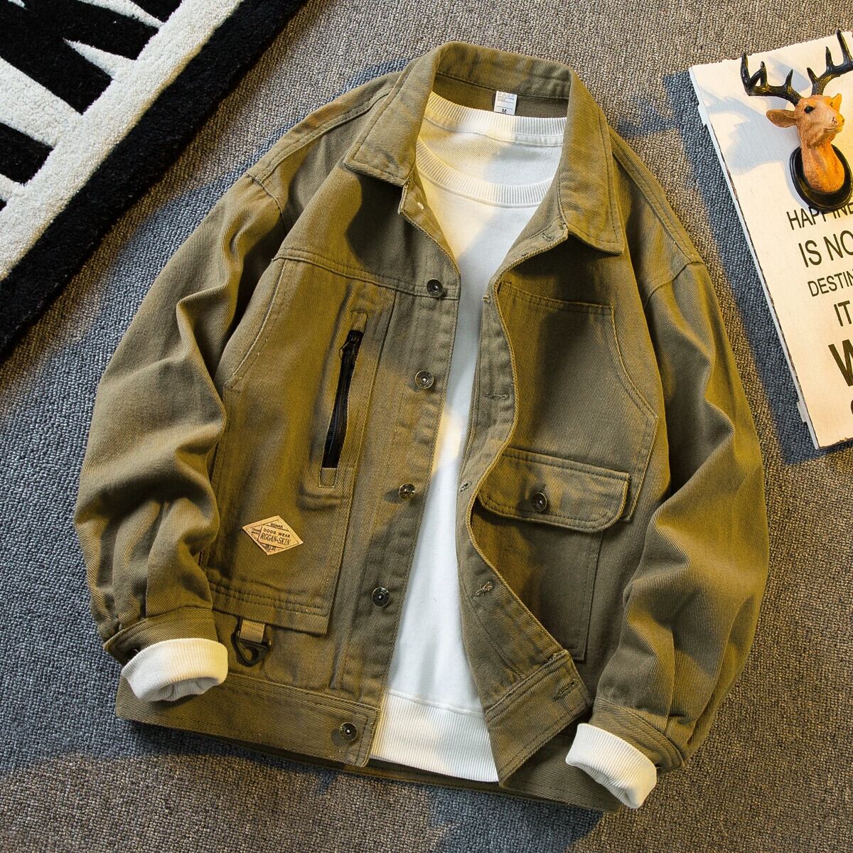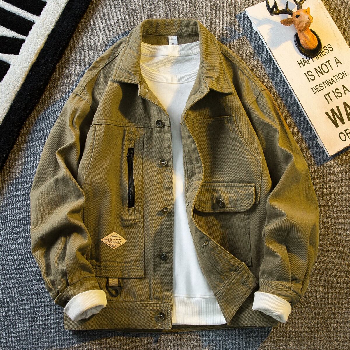 横型トレンディアメリカンワークウェアタフガイハンティングデニムジャケットメンズ秋冬レトロヘビーウェイトルーズラペルジャケット オータム 秋物 ウィンター 冬物 3381918435111128