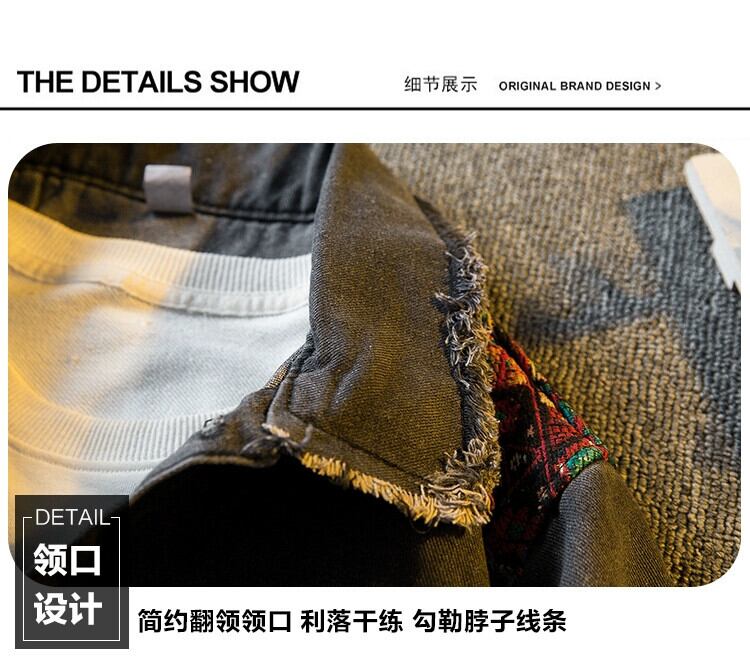 Hengpai トレンディなダメージウォッシュスプライシングデニムジャケットメンズ春と秋のトレンディなブランドデザインレトロエスニックスタイルジャケット スプリング 春物 オータム 秋物 3381924187025113