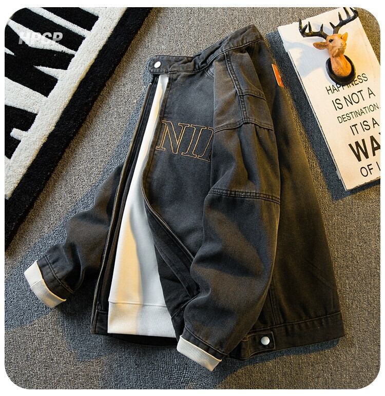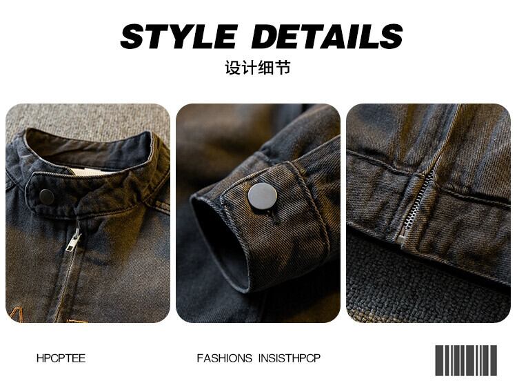 横型トレンディアメリカンレトロクリーンフィットショートスタンドカラージャケットメンズ秋冬ハイエンドハンサムデニムジャケット オータム 秋物 ウィンター 冬物 3381987314774319