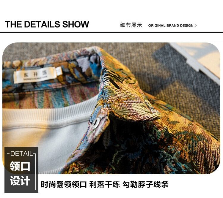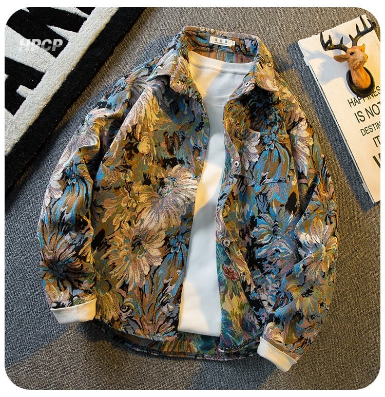 横型トレンディヴィンテージヴィンテージ油絵ジャカードシャツメンズ長袖春秋ハンサムデザインジャケット ロング スプリング 春物 オータム 秋物 ビンテージ 3381935039177763