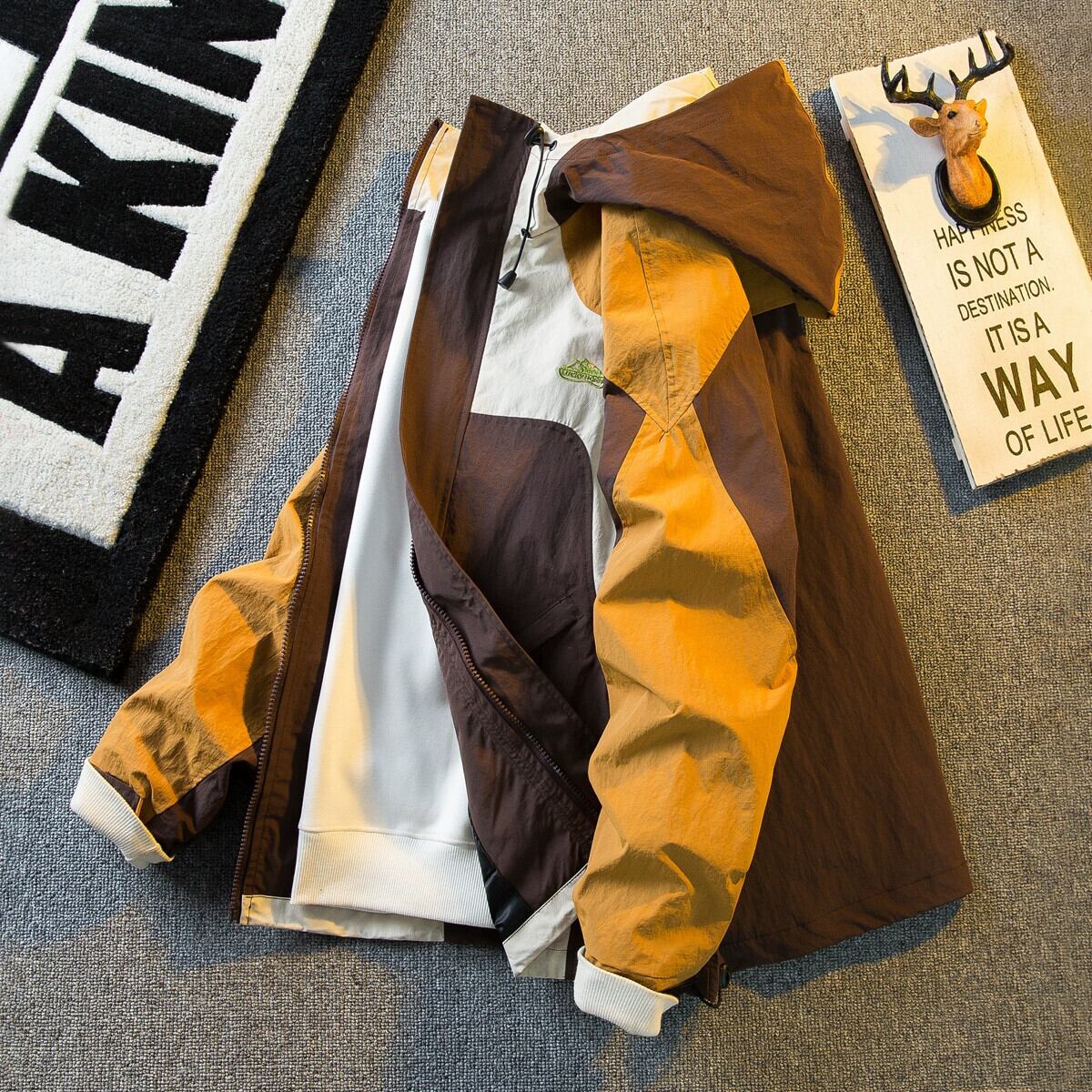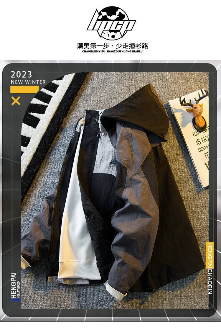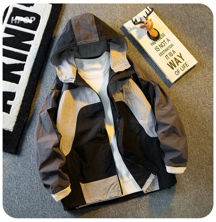 Hengpai トレンディなコントラストカラースプライシングワークジャケットメンズ春と秋のマウンテンスタイルの機能的な防風防水ジャケット男性 スプリング 春物 オータム 秋物 3381952675211186