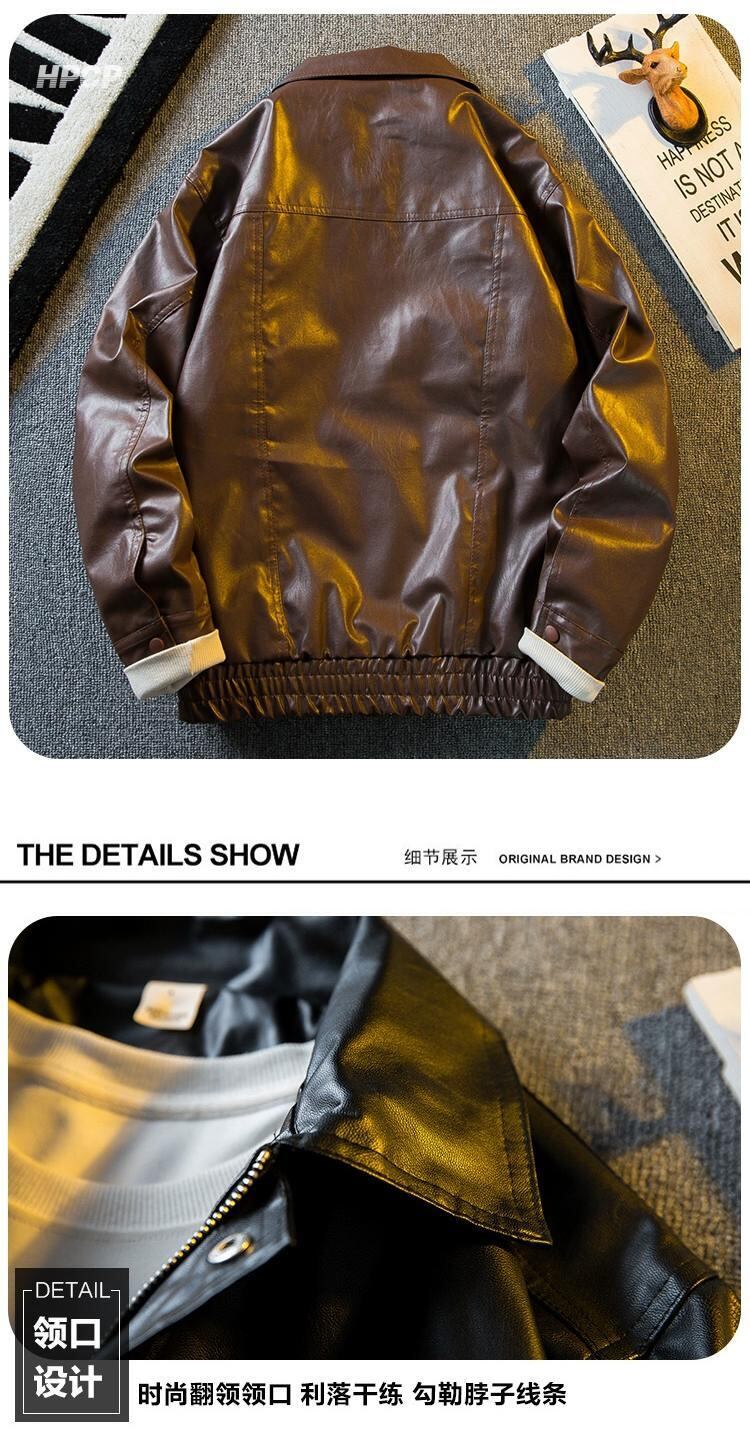 横向きのトレンディなメイラードレトロブラウンメンズレザージャケット、ハイエンドでハンサムなルーズラペルのオートバイレザージャケット 3381912627795278