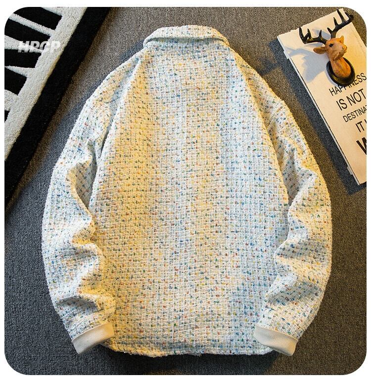 Hengpai トレンド春の新スパンコール小さな香りシャツジャケットメンズハンサムストリートカジュアル長袖シャツジャケット ロング スプリング 春物 3381942868571929
