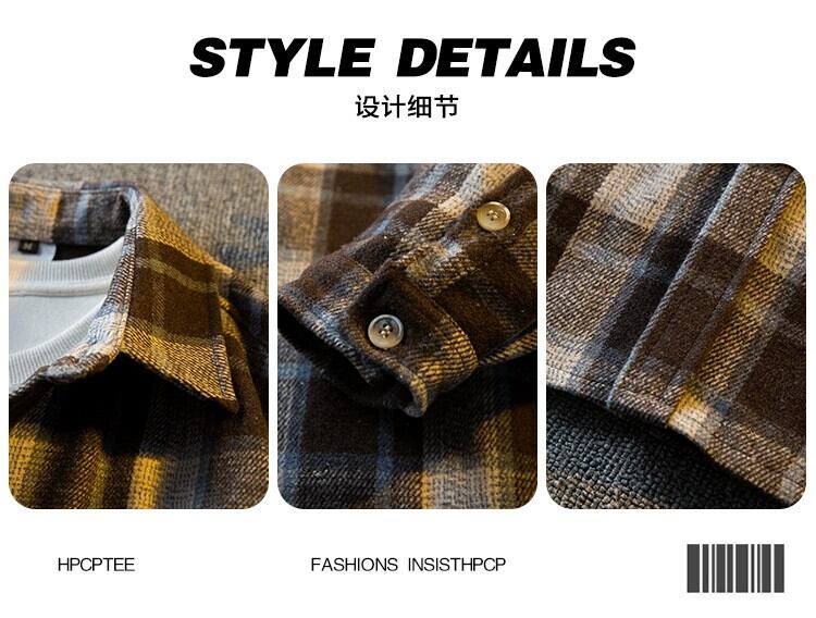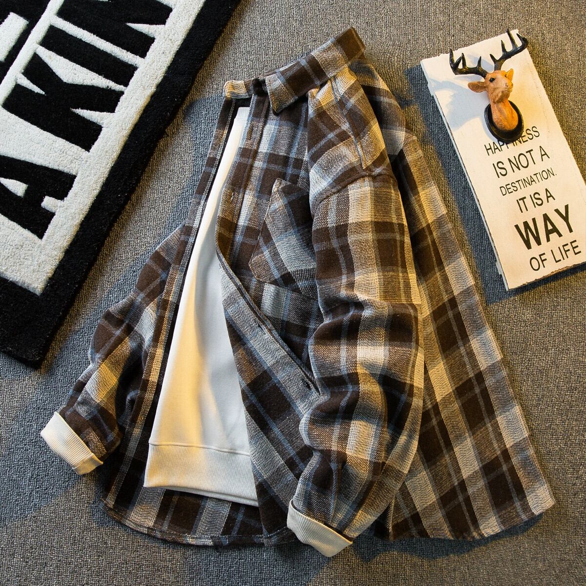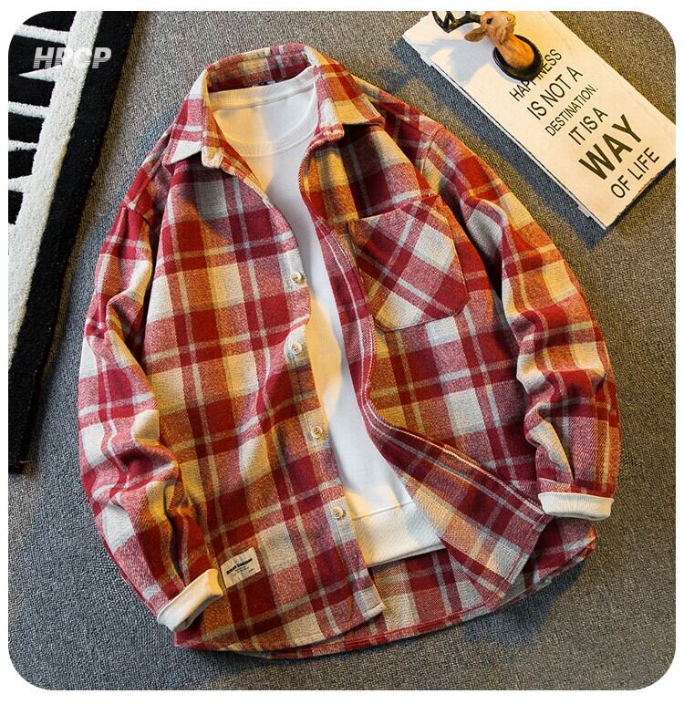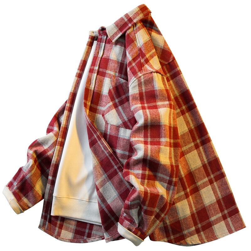 横型アメリカンスタイル起毛長袖赤チェック柄シャツメンズ春秋ルーズトレンディブランドレトロスモールフレグランススタイルシャツジャケット ロング レッド スプリング 春物 オータム 秋物 3381995135154369