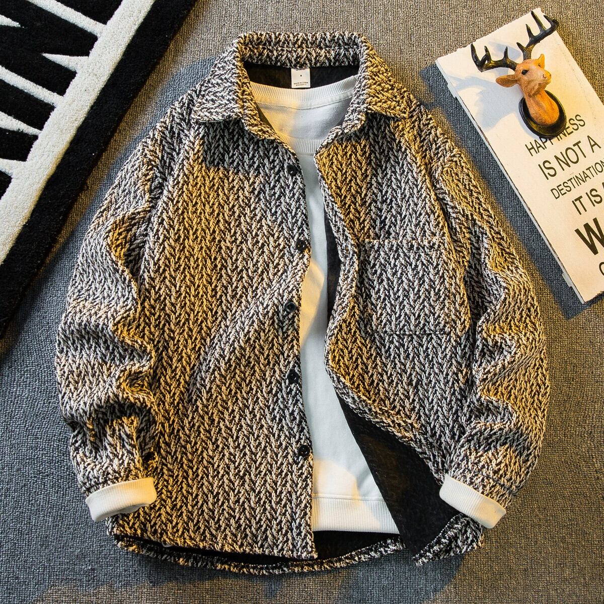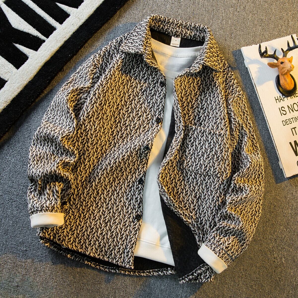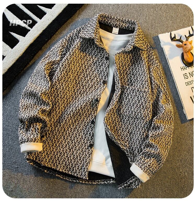 Hengpai トレンディなレトロな小さな香りのシャツジャケットメンズ春と秋のスタイルのハイエンドのトレンディなラペルジャケットカジュアルトップ スプリング 春物 オータム 秋物 3381991196705390