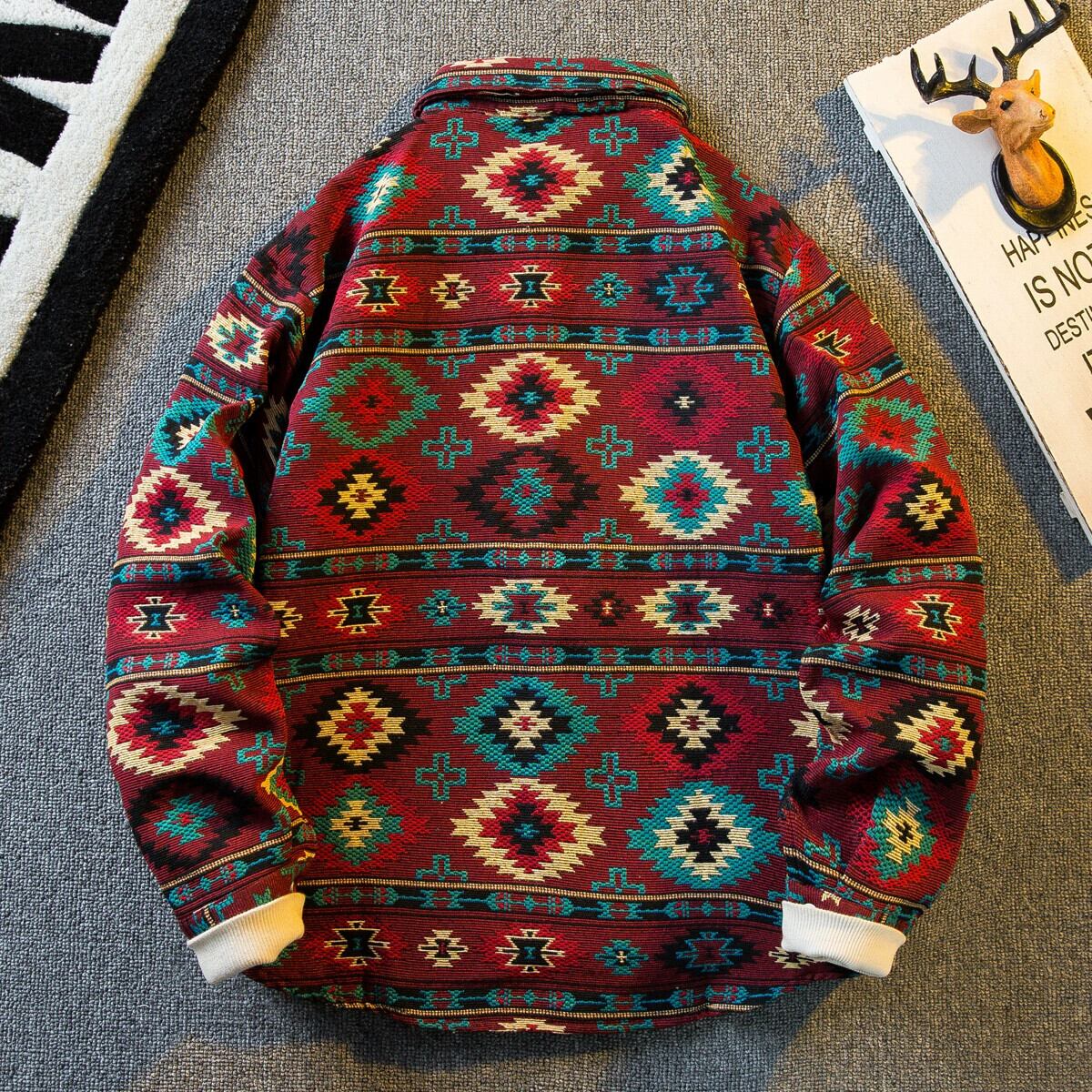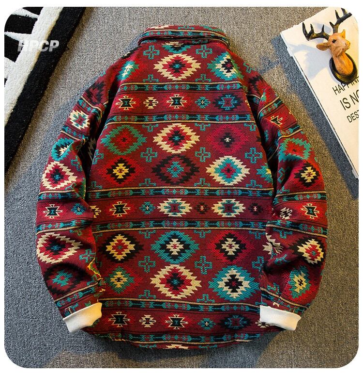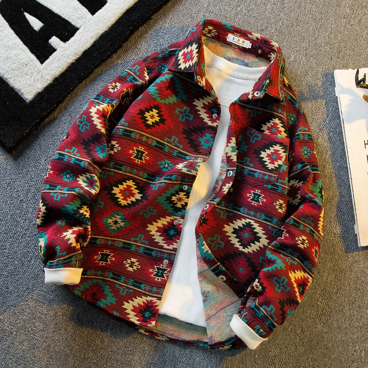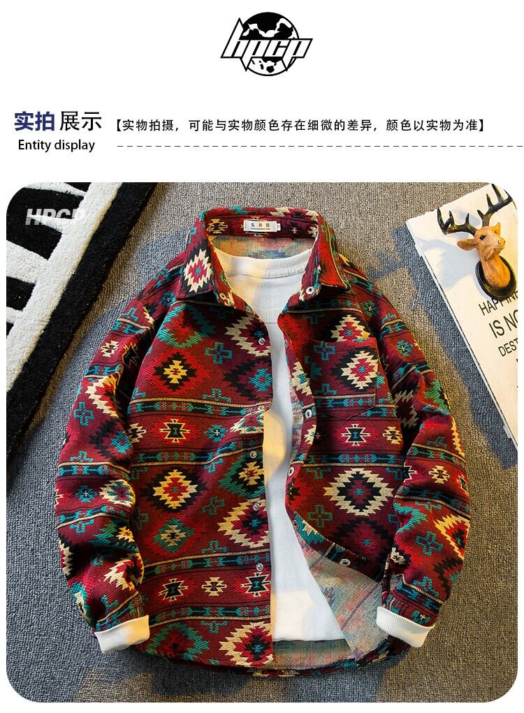 Hengpai トレンディな秋の新しいレトロな刺繍織シャツメンズ長袖トレンディなシャツメンズエスニックスタイルジャケット ロング レッド オータム 秋物 3381998197744236