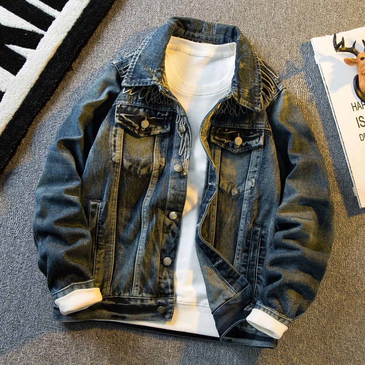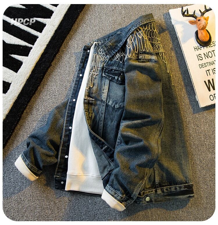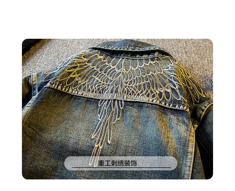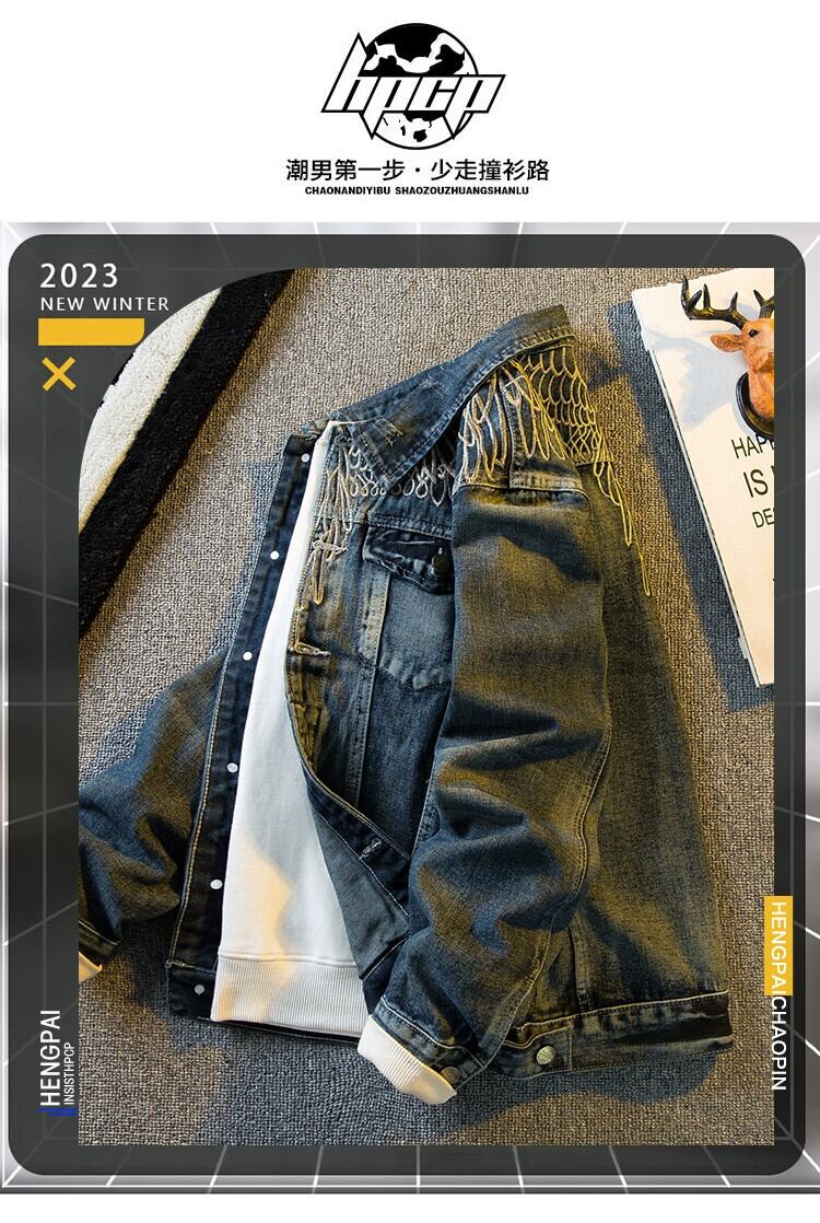 Hengpai トレンディなアメリカンストリートバイクレトロデニムジャケットメンズ春と秋のハンサムスリムフライトジャケット男性 スプリング 春物 オータム 秋物 3381972541872273