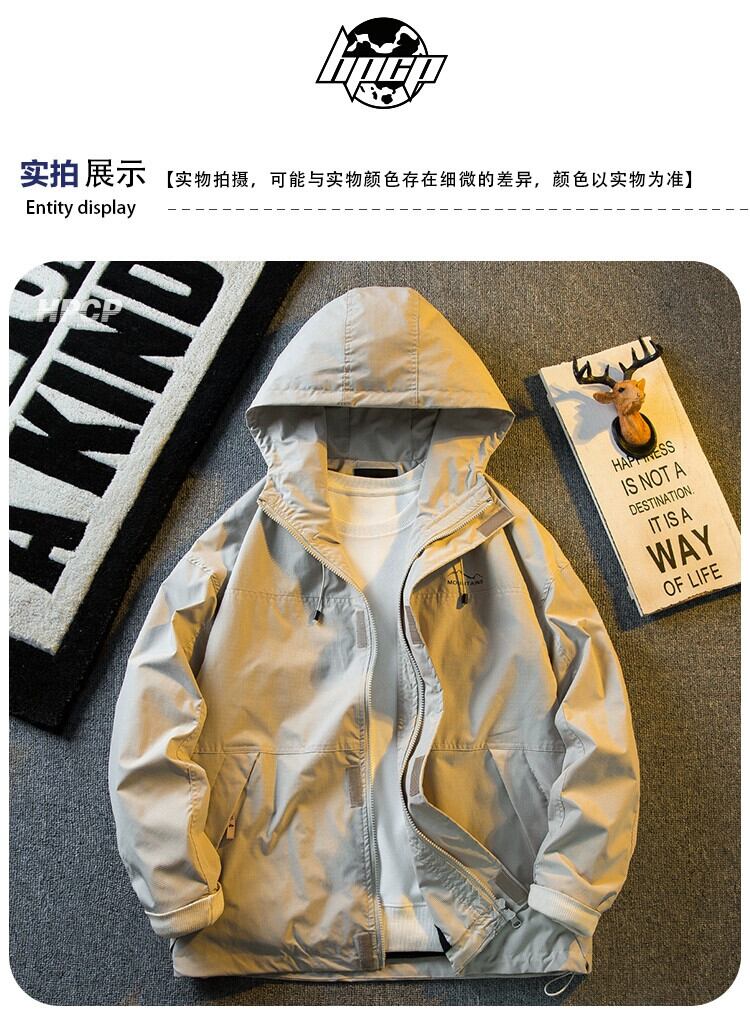 Hengpai トレンディマウンテンシリーズベーシックアウトドアジャケットジャケットメンズ春秋薄手カジュアルフード付きワークジャケット スプリング 春物 オータム 秋物 3381939840911724