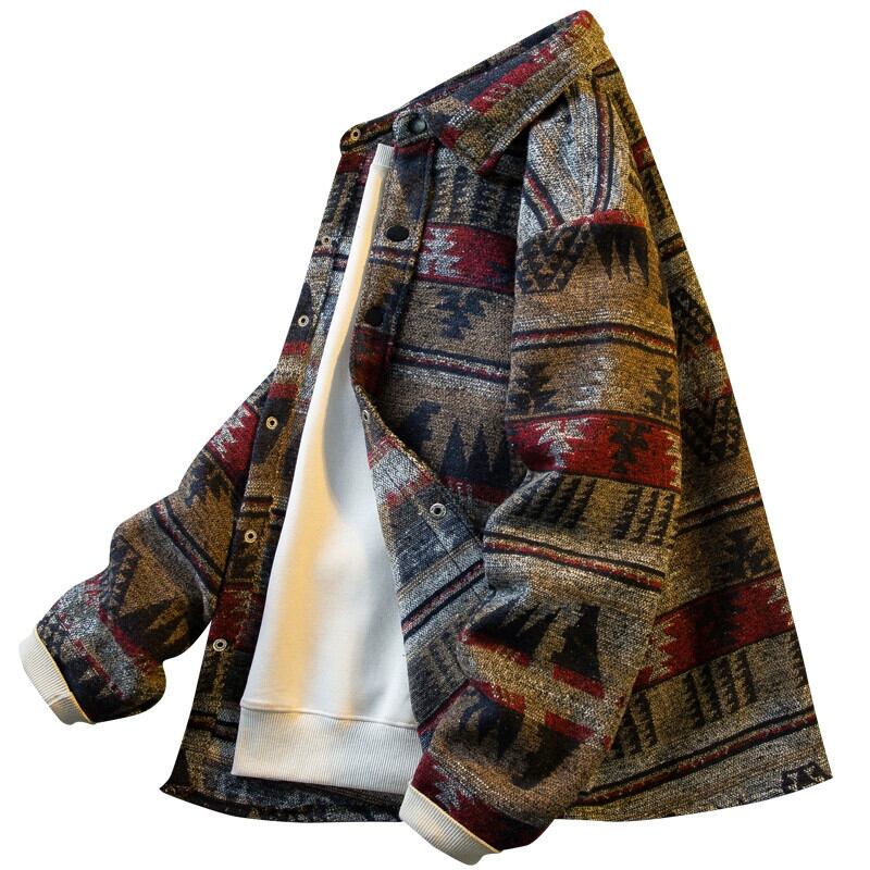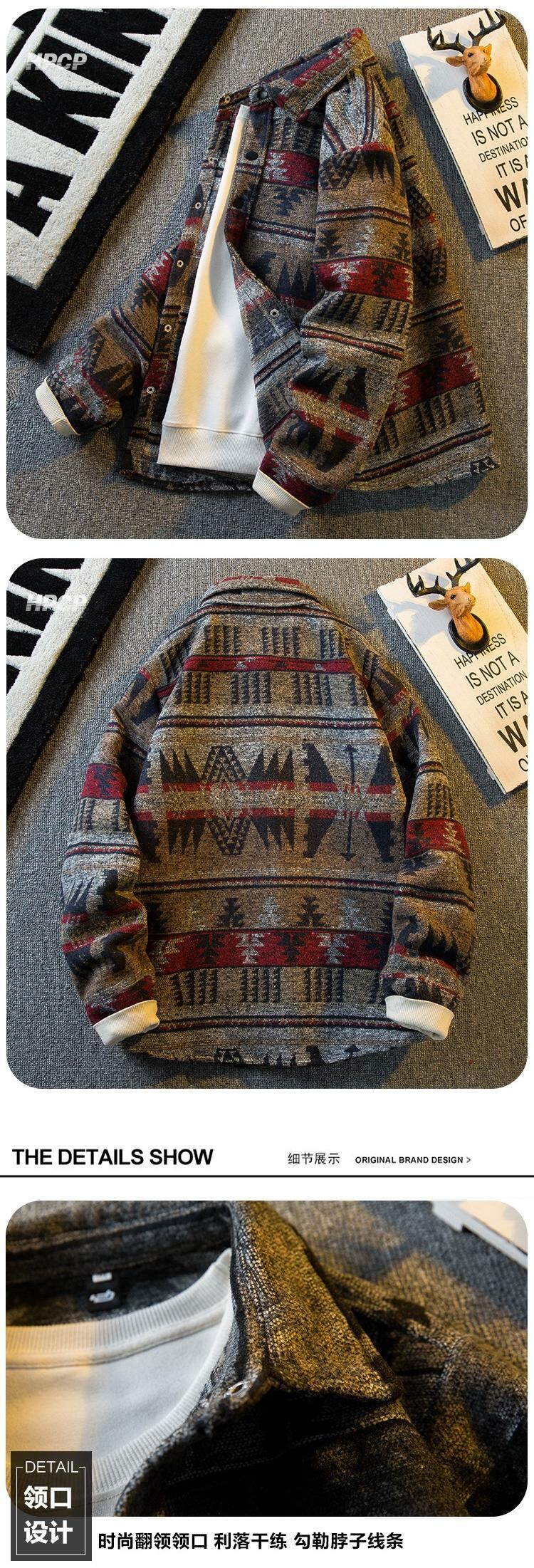 Hengpai トレンディなレトロなインドウール長袖シャツメンズ春と秋のメンズエスニックスタイルラペルジャケット ロング スプリング 春物 オータム 秋物 3381952344410130
